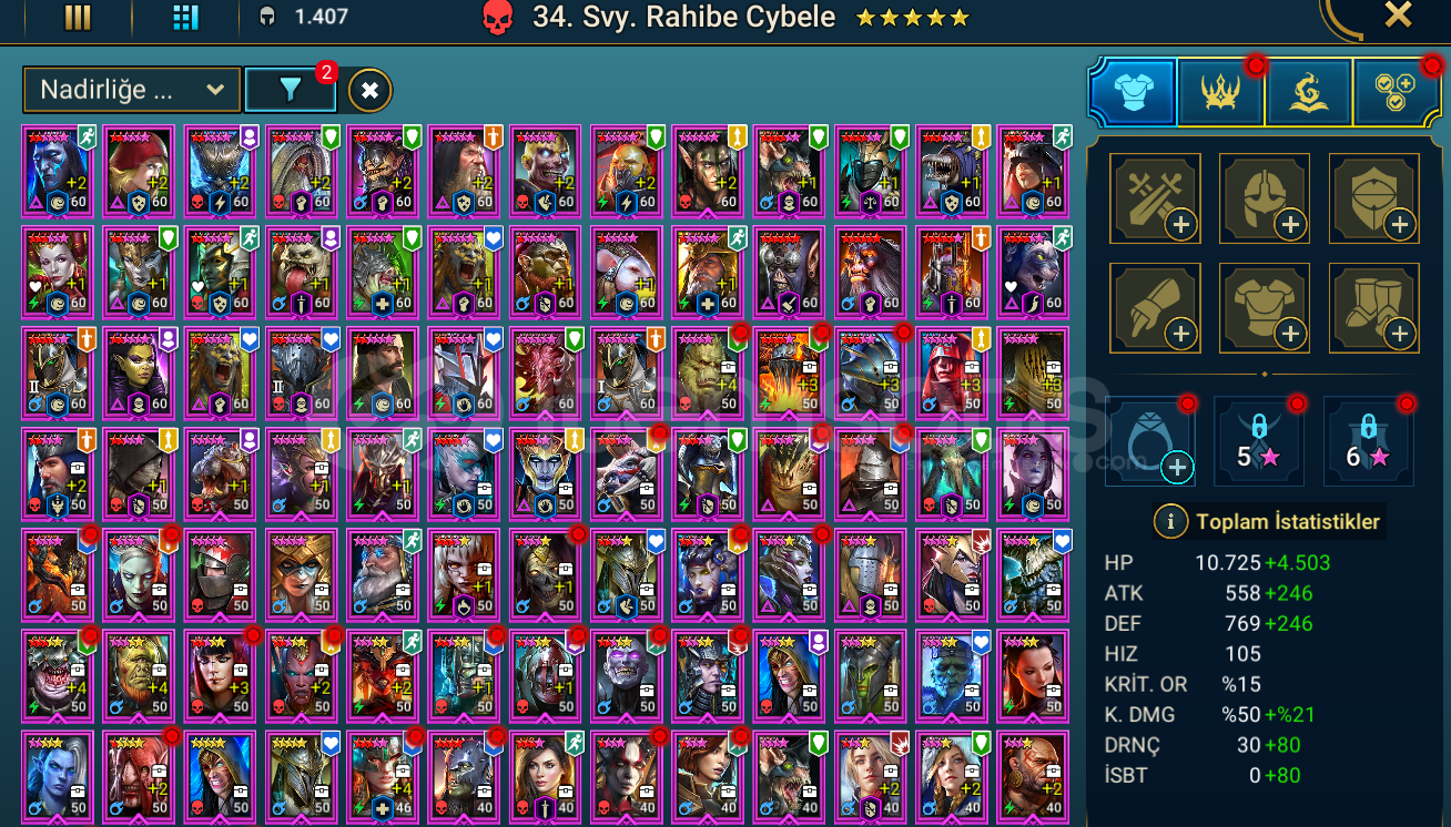 6400 taş 4 mitik ve 3 gnut vardır diğer heroları inceleyin (Acrizia, thor, odin vs.) 149+ efso