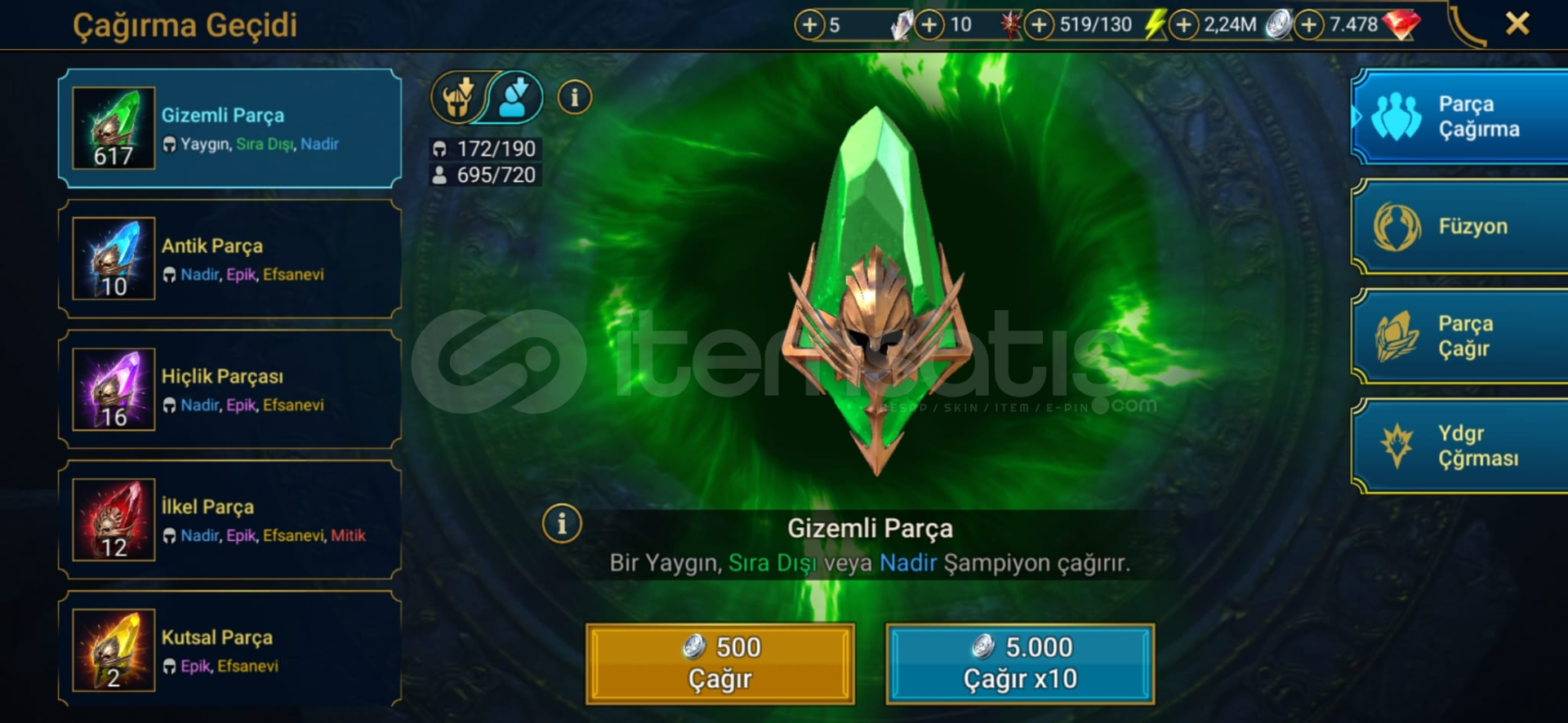 Yılbaşı için taş stoğu var. 16 hiçlik 12 ilkel 2 kutsal