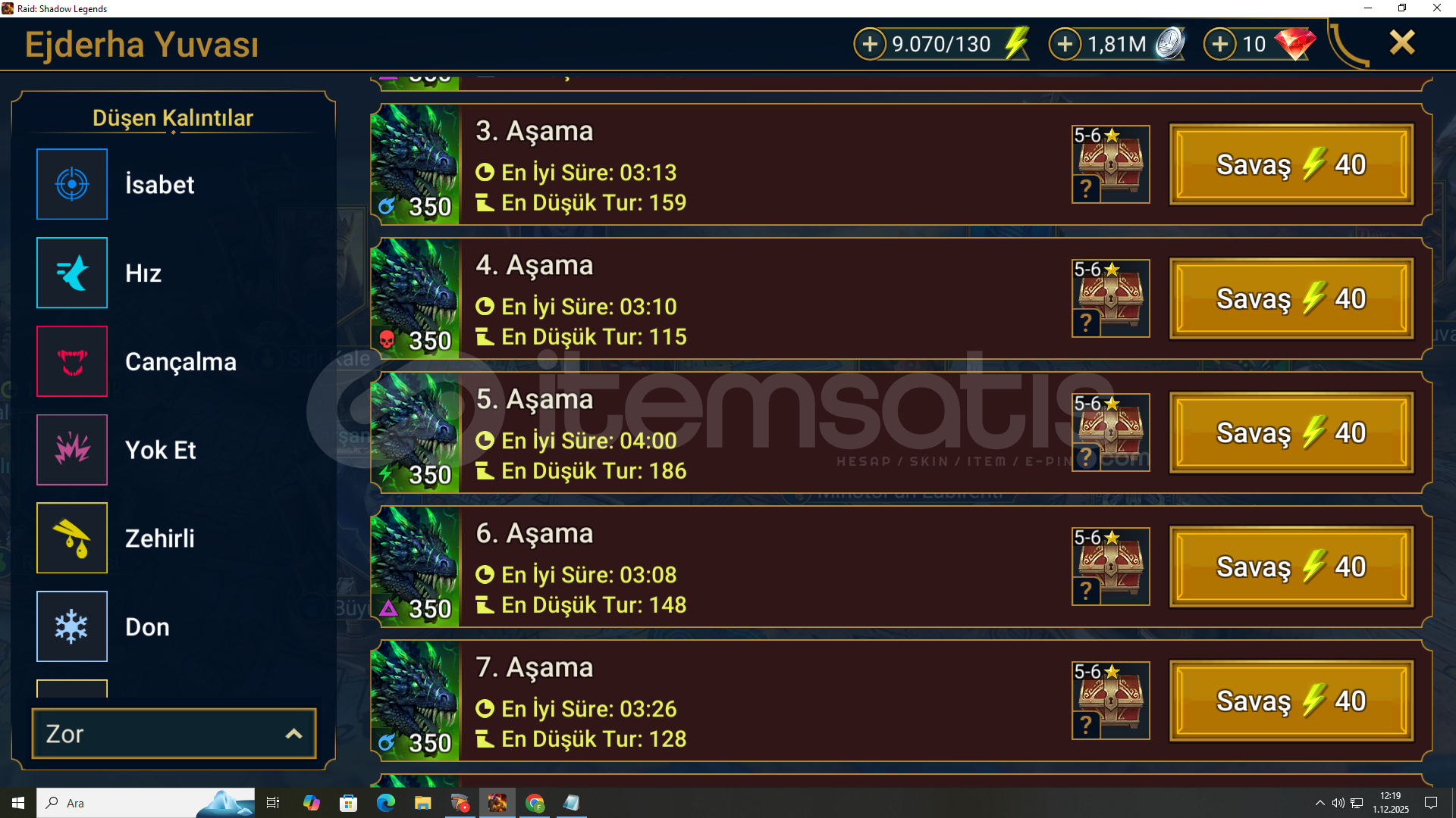 uk2 key kabus 1-2 key kimera her zorluk 1 keyzindanlar en kötüsü zor 1 (ejder zor 5 açık)lanetli şehir normal full ama zorda hero ihtiyacı varkıyamet normal zor tırmanıyorarena altın 4 canlı arenada sorunsuz embrys füzyon yarısı bitti mikage 3 epic lazım sadece