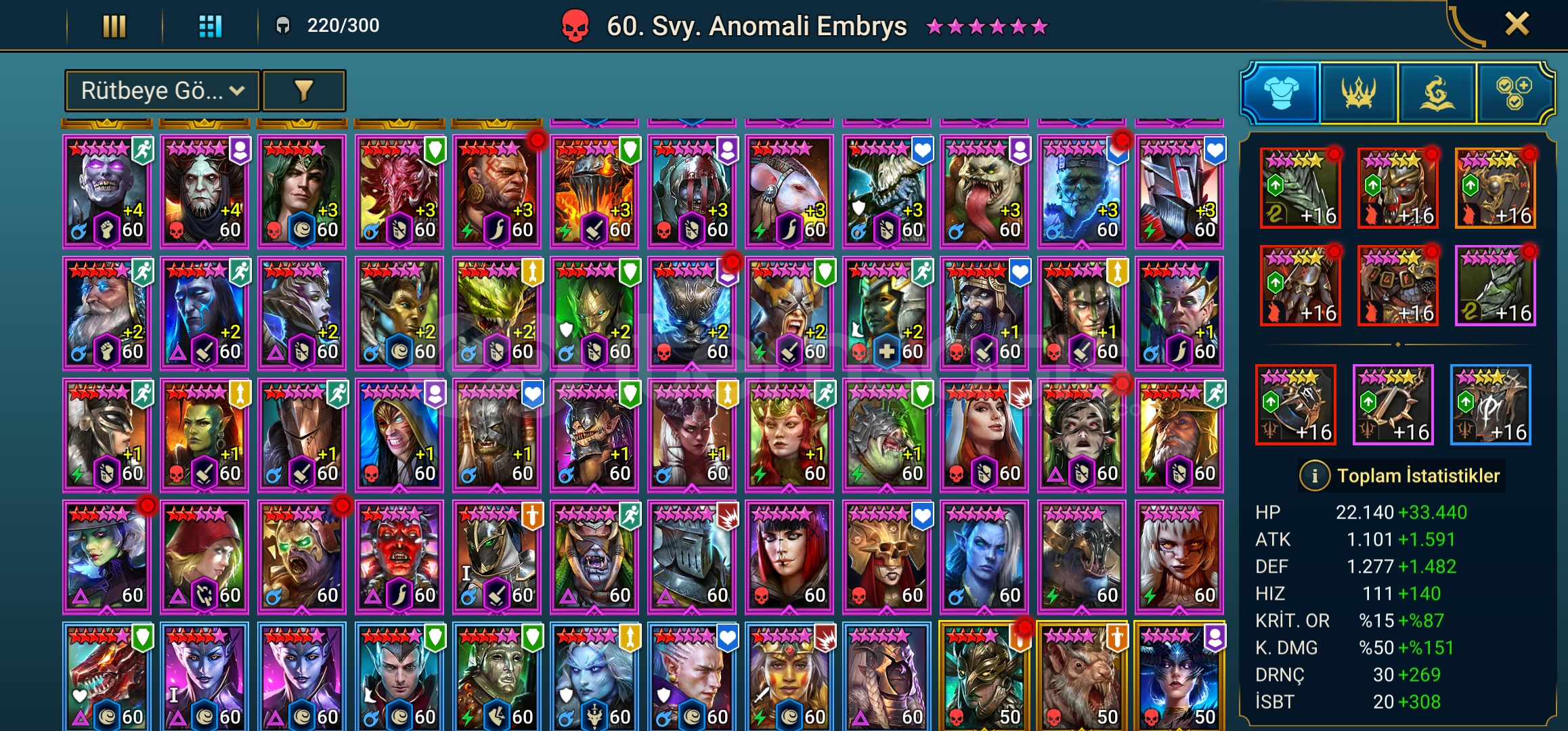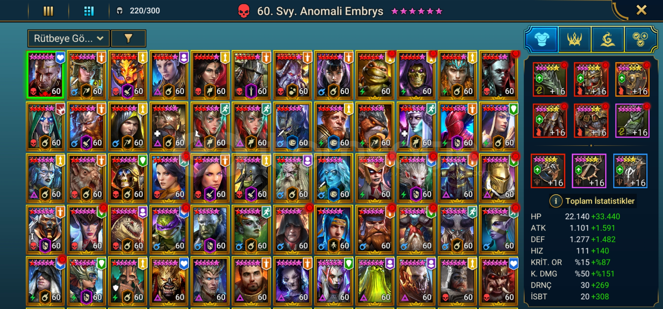 MITIK EMBRYS VE 141 EFSANELI TAKIM BOLCA KITAPLİ 25K ENERJILI 60 LVL HEROLARDA NEREDEYSE KITAPSIZ USTALIKSIZ HERO YOK. DIGER DETAYLAR FOTOLARDA