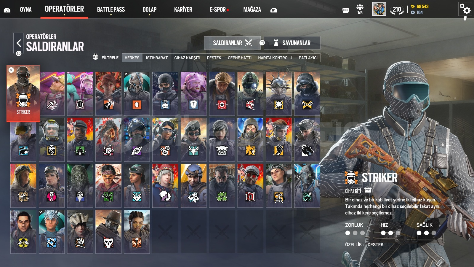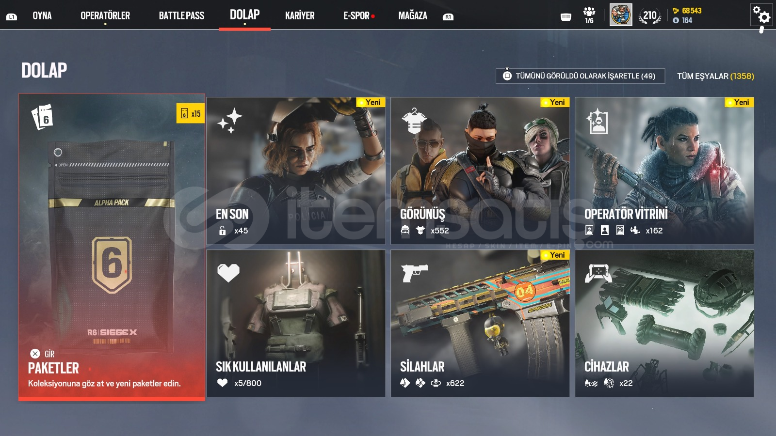 Hesap fotoğraflarda göründüğü gibi dolu doludur 7 tane elit vardır 3 savunmada 4 tane de saldırıda envai çeşit silah ve kostüm skini vardır. Kaç tane skin olduğu dolapta gözüküyor inceleyebilirsiniz.