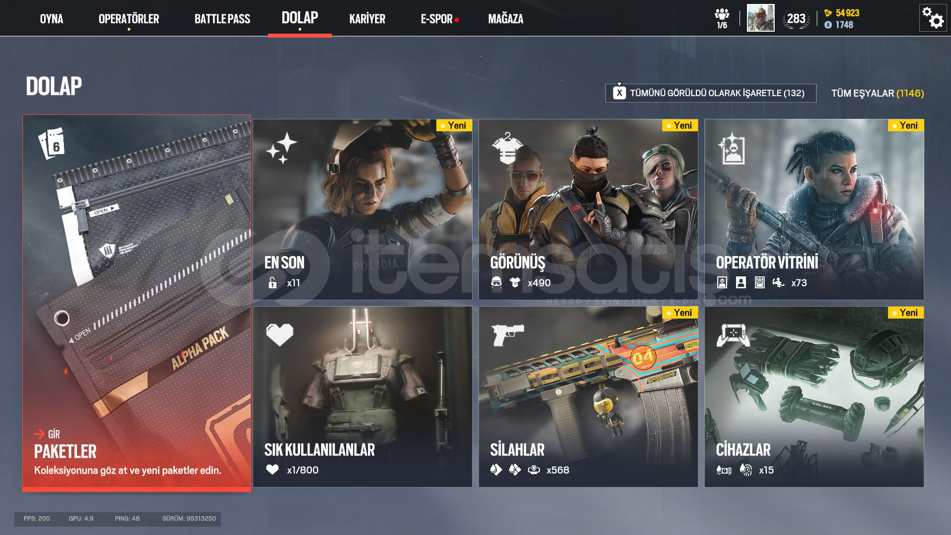 283 level R6 Hesabı Full+Full Dolu HesapPhantom Sight Sezonunda ilk ranked maçını atmış hesapEski hesap genel olarak ps4'den oynandıgı için çok rank kasılmadı1146+ Eşya490 Görünüş73 Operatör Vitrini568 Silah Skini15 Cihaz Skini3 Elite Skin ( İana , IQ , Valkrye )54923 Nam1743 R6 KredisiÖMÜR BOYU GARANTİLİ HESAP AL HER ŞEYİNİ DEGİŞTİR!!!PAZARL...