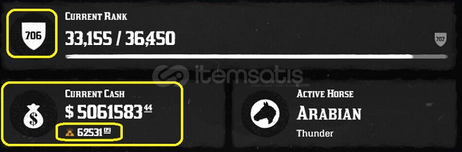 RDR 2 Hesabın yanında 60.000 GOLD +910 LEVEL ve 5M Para ile verilecek.