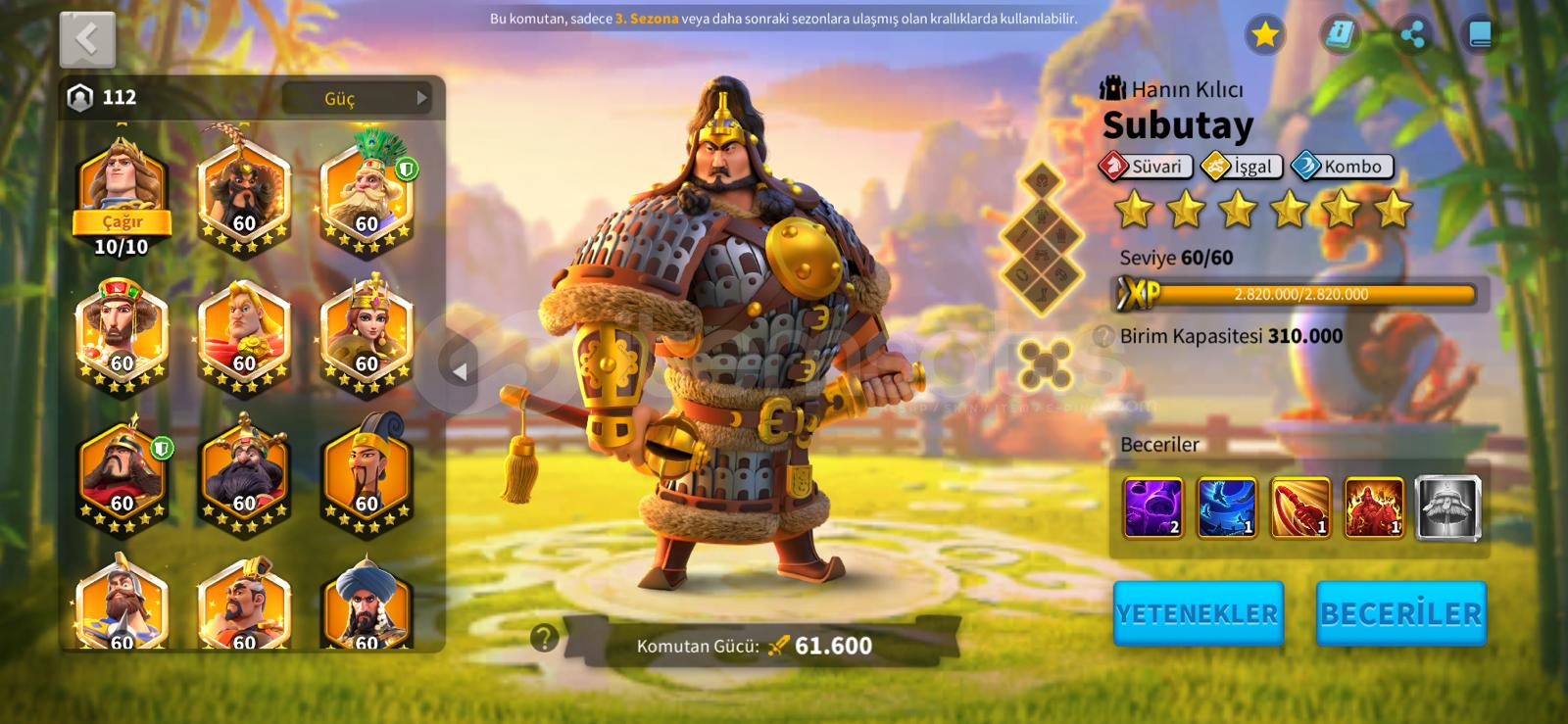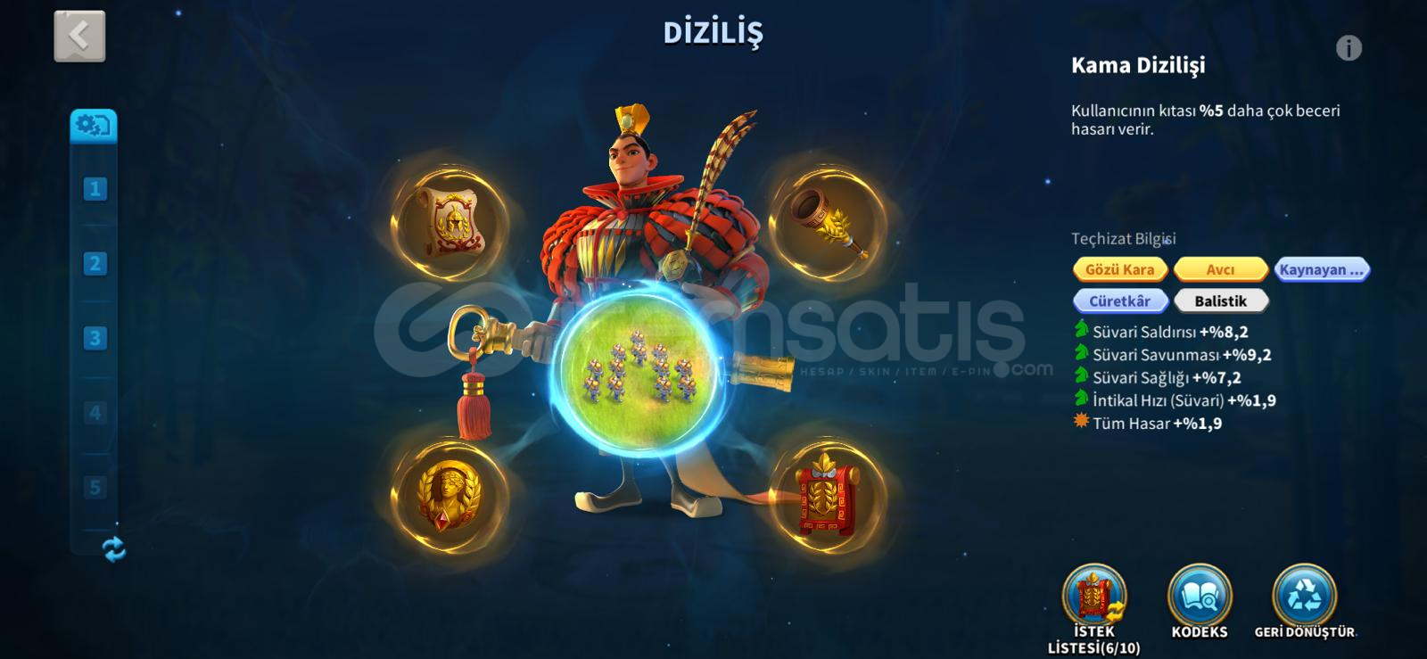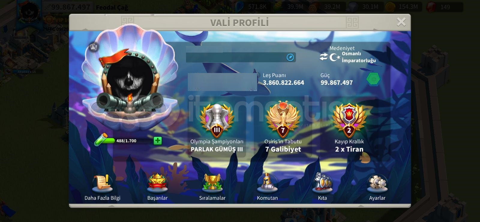 VIP 16 - 17 için 250k puan gerekiyor5 adet farm hesabı mevcut aynı krallıkta15B çantasında kaynağı mevcut30 pasaportu var 13 tane daha alacak birlil kredisi varAlacakaranlık ve İlahi mesken temaları mevcutKvk 450k sikkesi ve 4 tane sarı jetonu var34 sarı ekipman 3 aksesuar toplamda 13 kritikli ekipmanı mevcutUzmanlık komutanları toplam 23Huo QubingArthur PendragonQin Shi HuangBai QiAlexander NevskyWilliam Wallace...