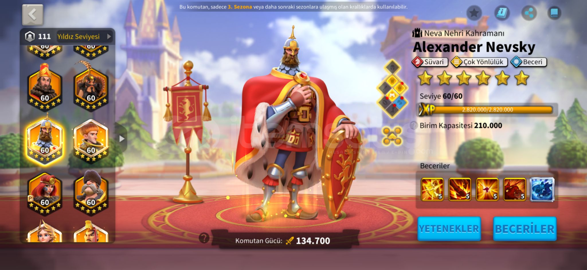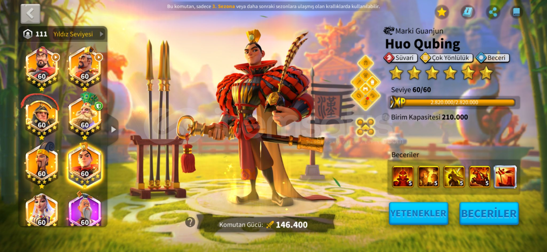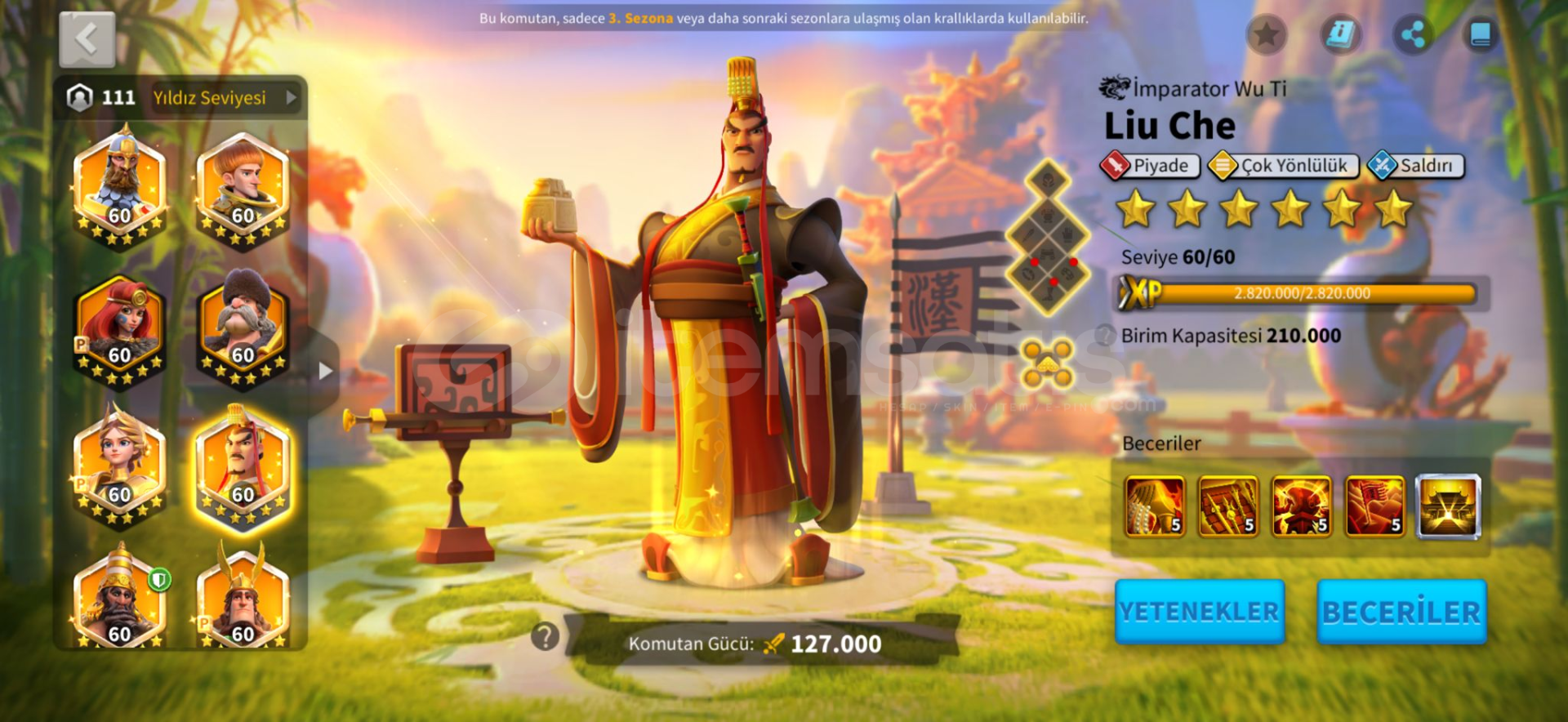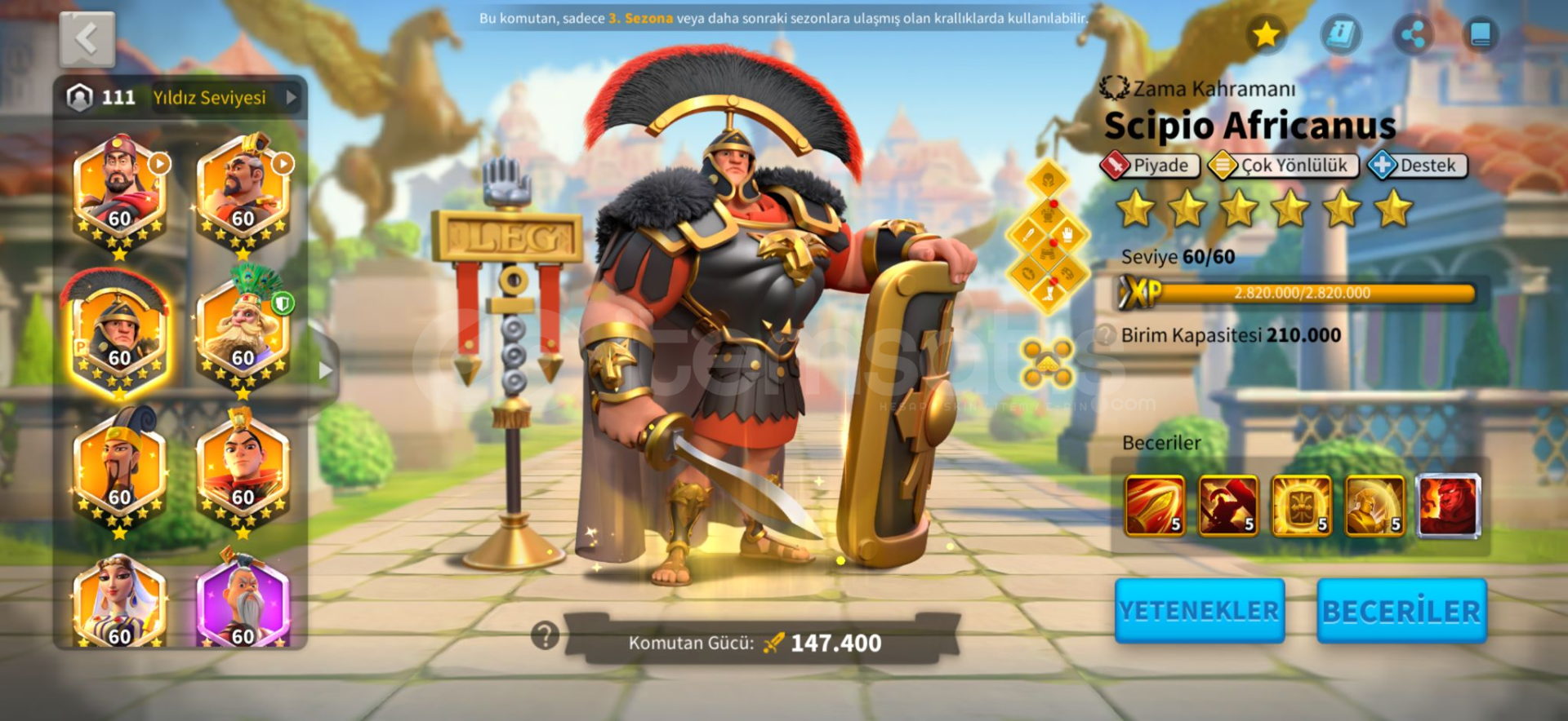 •⚜Komutan: Scipo p, Zhuge Liang, Huo Qubing, Hera, CC, Sajar, YSG, Ashur, Nevsky, Liu che, Cordoba, Aethel, Arthur, Henry, Herman, Alex, Jean p, Boudica 5 5 5 3, Guan 5 5 3 3 ve 3 adet toplama komutanı