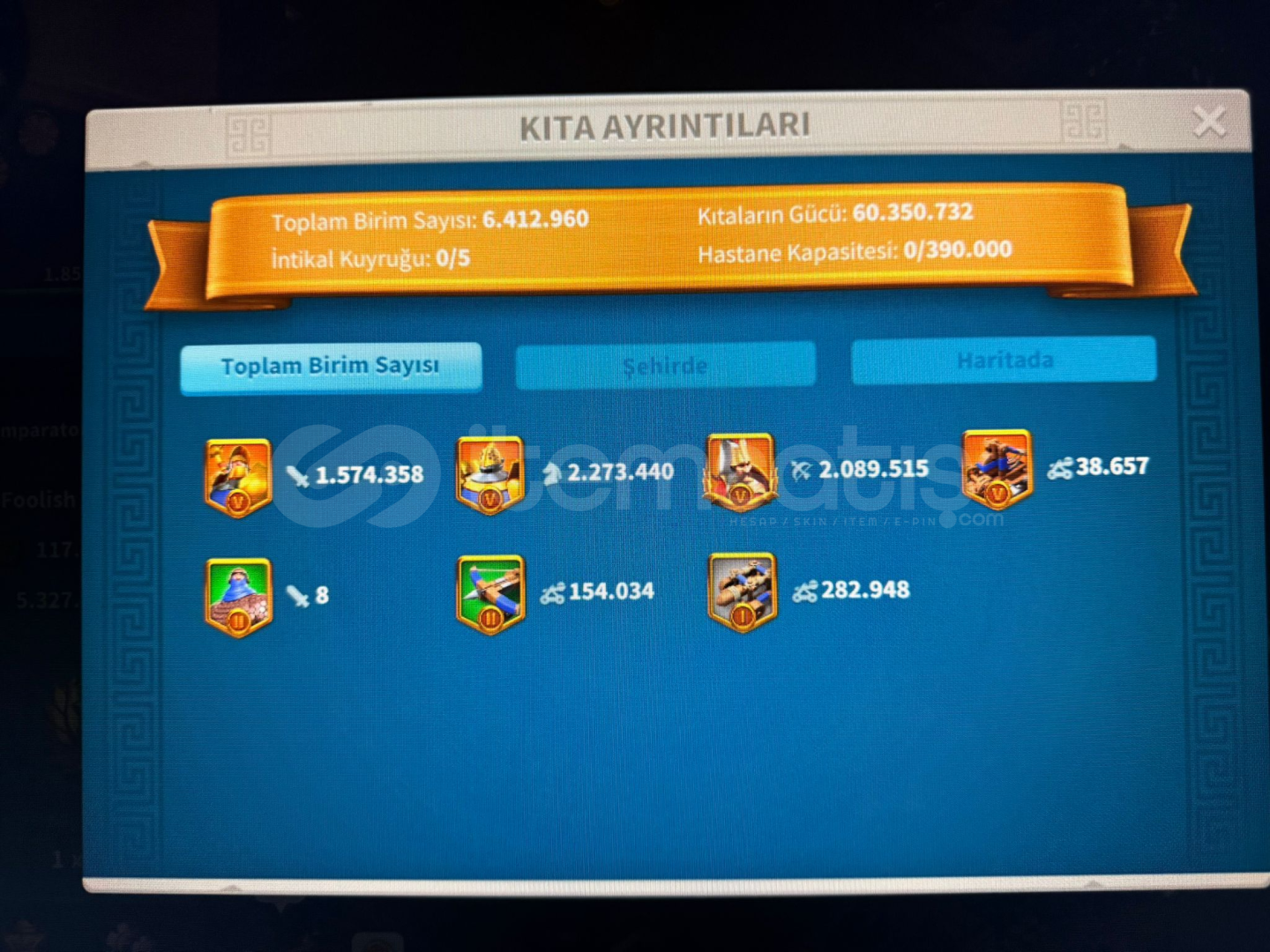 BU FİYATA KACMİCAK UZUN VADELİ 2000 GÜNLÜ HESAP •⚜Güç : 117.418,452•⚜Vip: 17•⚜Komutan: Scipo p, Zhuge Liang, Huo Qubing, Hera, CC, Sajar, YSG, Ashur, Nevsky, Liu che, Cordoba, Aethel, Arthur, Henry, Herman, Alex, Jean p, Boudica 5 5 5 3, Guan 5 5 3 3 ve 3 adet toplama komutanı•⚜Şehir Temaları (Yalnızca Efsanevi) ; Alacakaranlık Çöker, Topkapı Sarayı, Daidalus ...