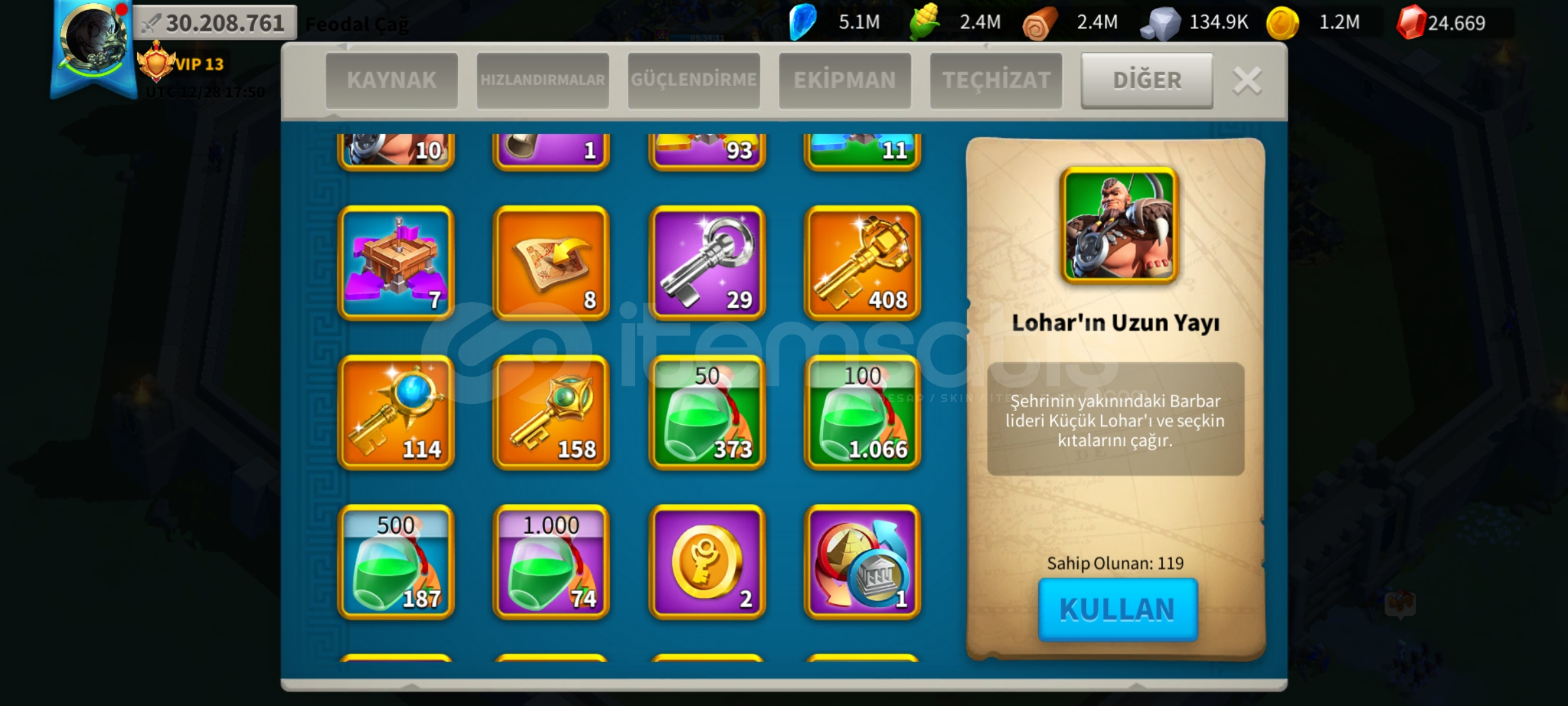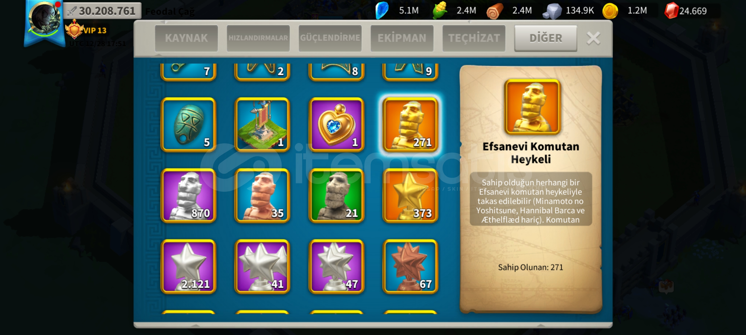 Hesap boş bir hesap kesinlikle değildir kaynak sorunu olan bir hesap sadece oyunu bıraktığım için satıyorum hesabın tek eksi yönü gücü oda kaynak toplandığı zaman rahatlıkla güç basabilirsiniz akademi zaten zenite oynamak için cok fazla basılması 8 pasaport varVIP 14 e 150k var T5 açık en az 2 komutan full sari set hesaplarla tâkâs düşünü...