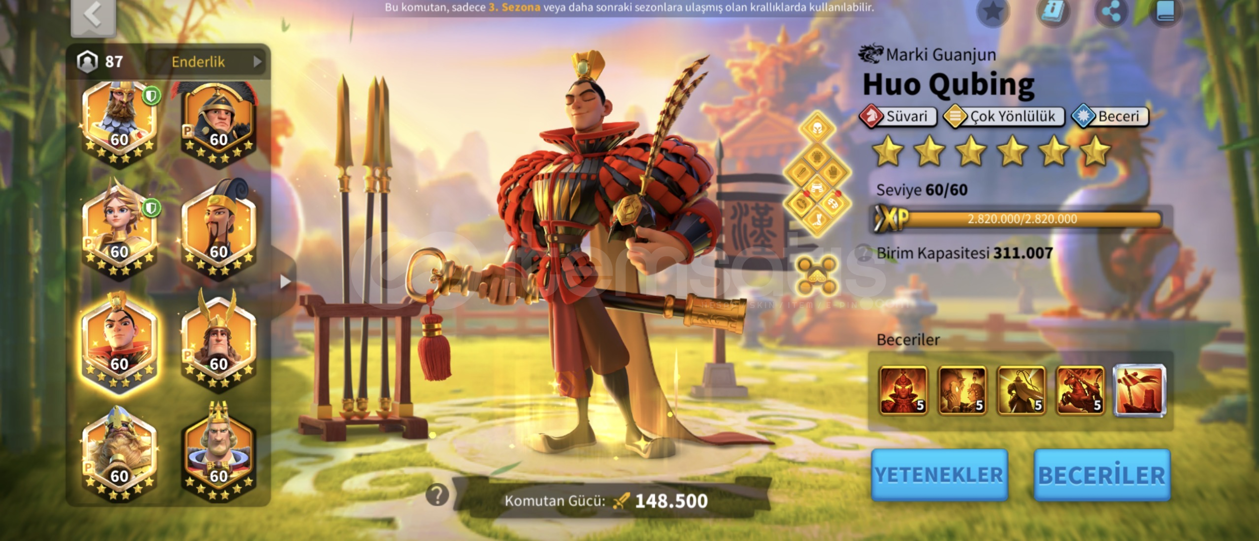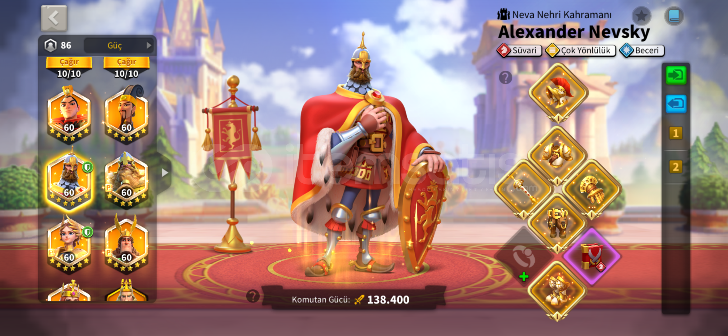 ★ Max Komutanlar : (HUO, Nevsky , Zhuge , Herman , jeanne , ragnar lodbrok ) arthur (5554) , scipio (5515) neredeyse 4 kıta