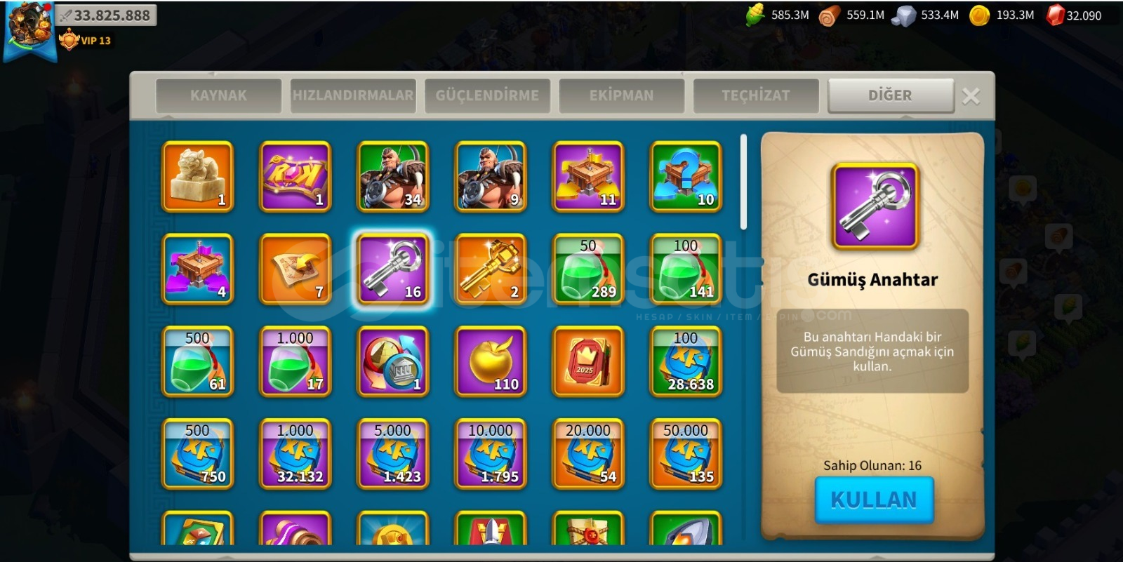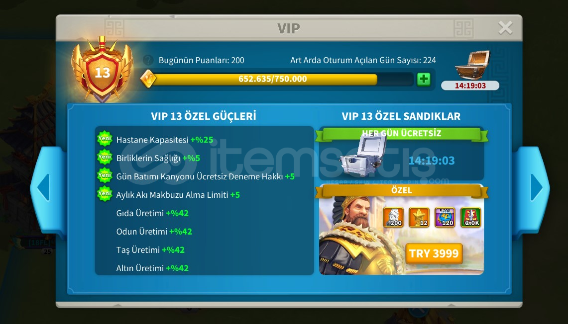 🛡️ Komutanlar : Alex, YSG, Martel, Sun Tzu💪 Güç : 33.850.342⚡ Hızlandırma : 301g Genel Hızlandırma, 27g İyileştirme Hızı, 30g Araştırma Hızı, 3g Eğitim Hızlandırması, 11g İnşaat Hızlandırması📦 Kaynak (Rss) : 1.4B Odun, 1.4 Mısır, 1B Taş, 802M Gold🎖️ VIP : 13🛂 Pasaport : 7🏅 Altın Heykel : 84b...