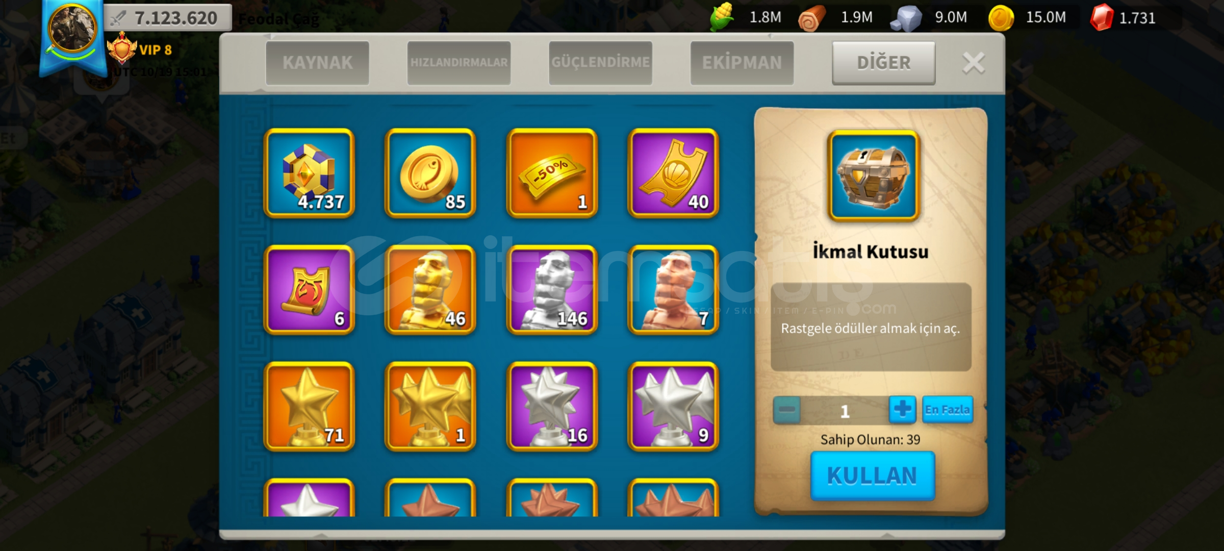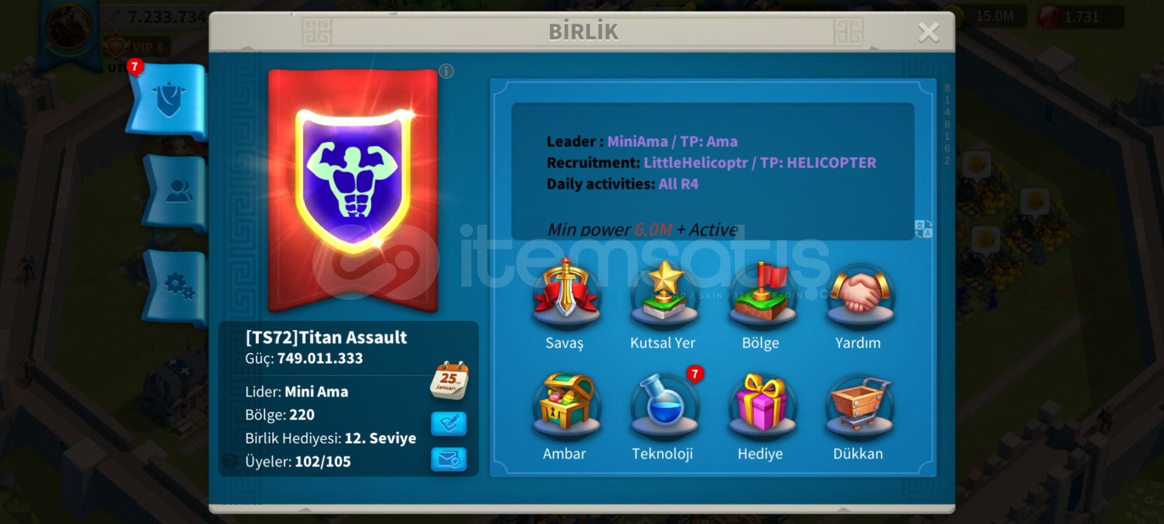 3872 krallığında en iyi 4. Klan/ her kaynaktan(altın hariç) +50m kaynak/ T4 açık/ 5 kıta açık belediye 22. İletişim için İnstagram: edoynix Pazarlık yapılır, sağlam hesap