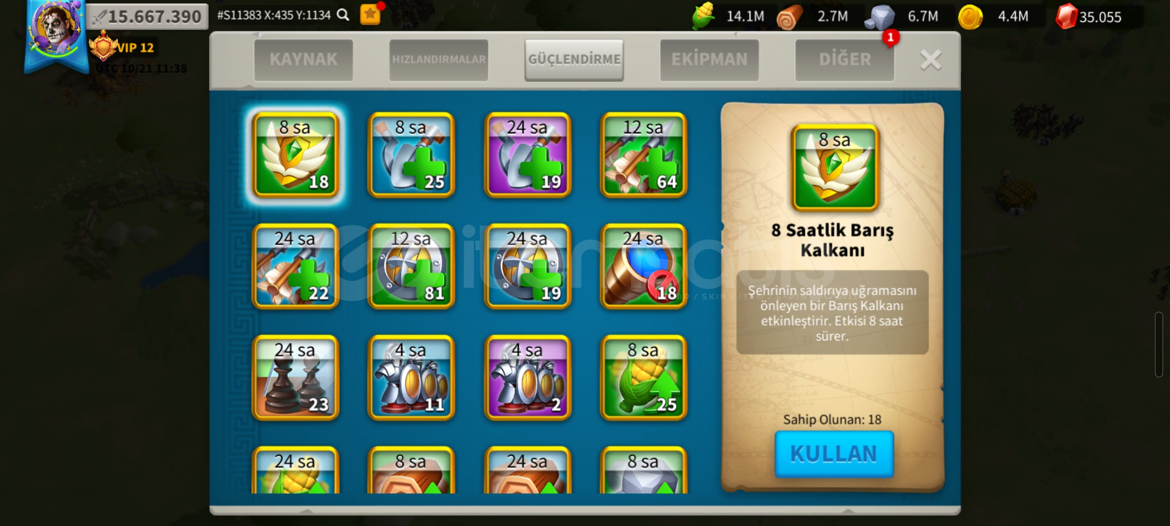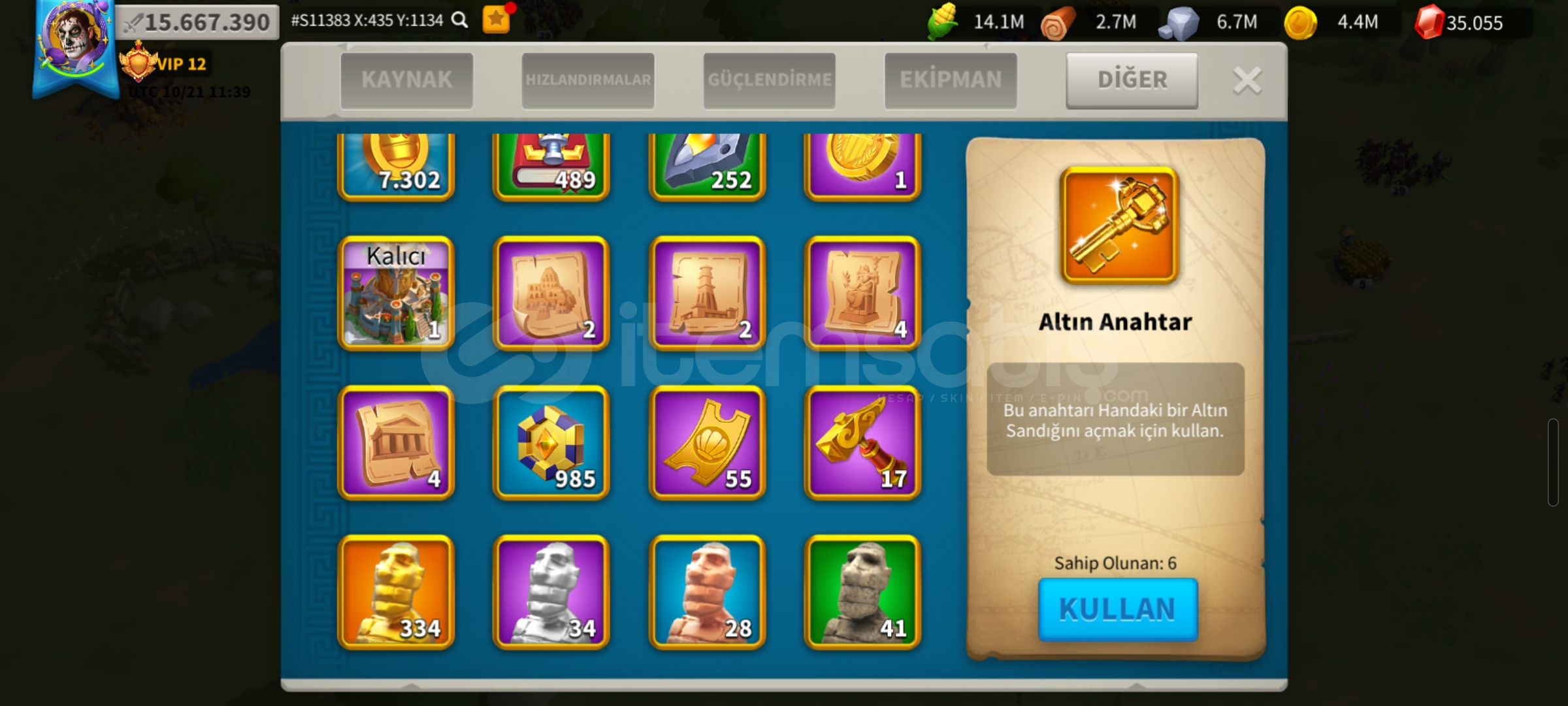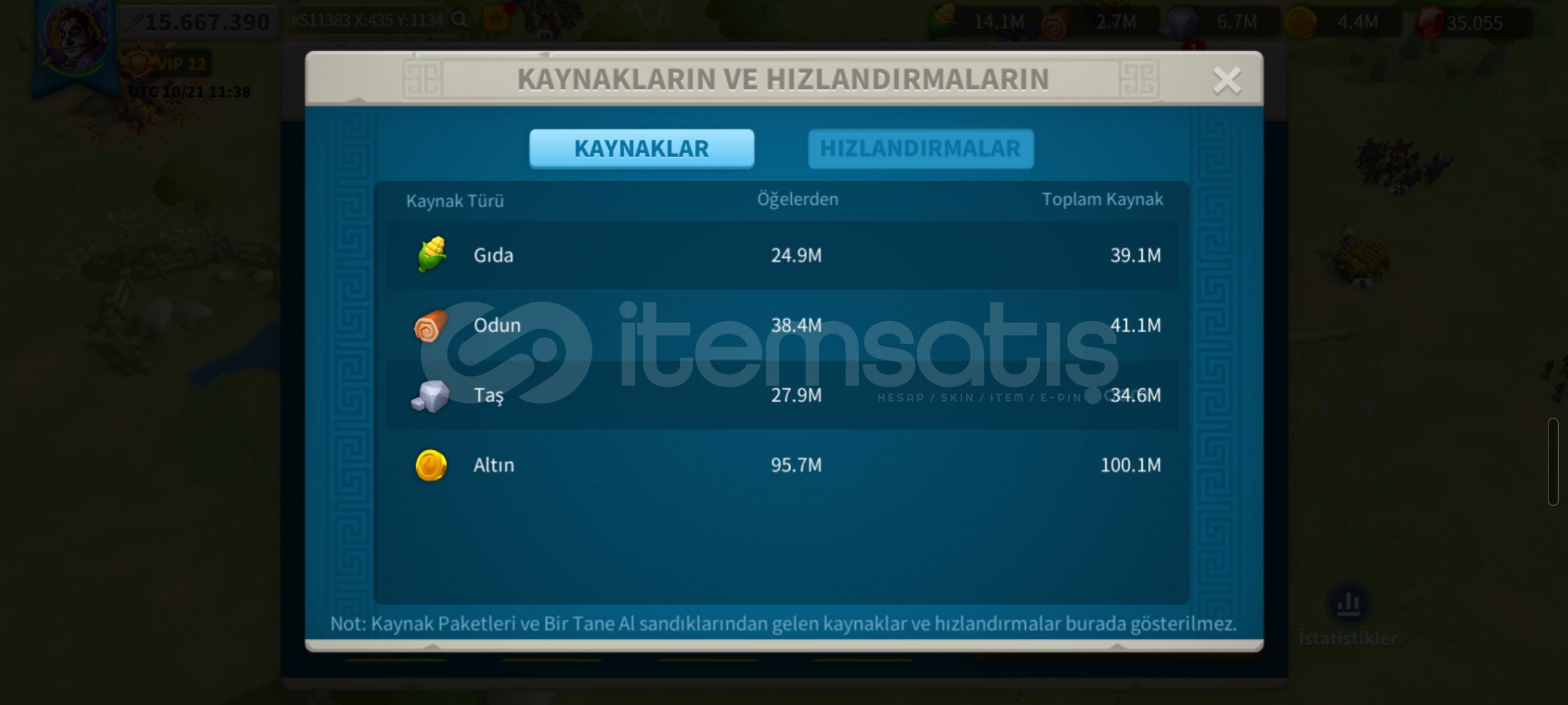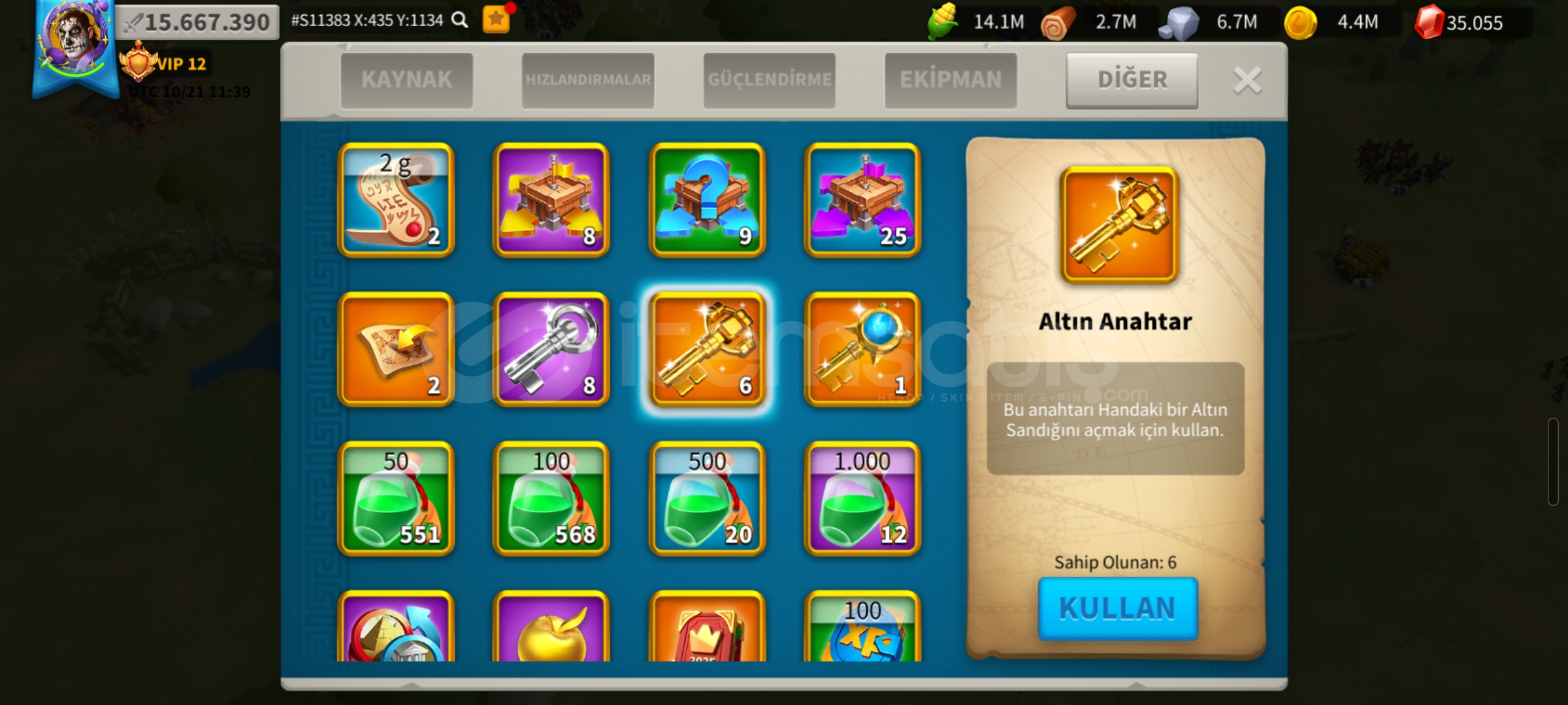 15.6m güç 335 sarı kafa var , kvk1 yeni başladı , vip 12 , 13e az kaldı ,ysg açık , 35k cevher