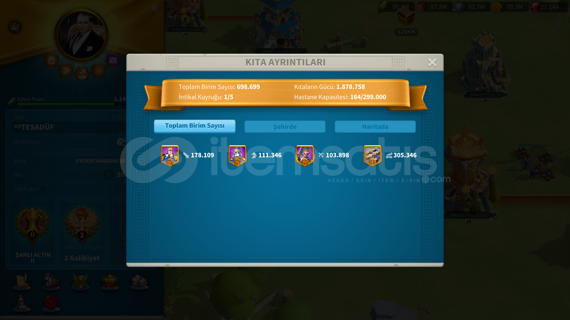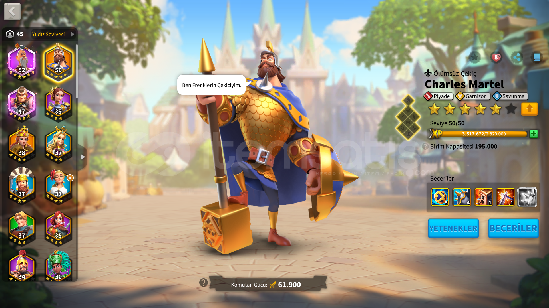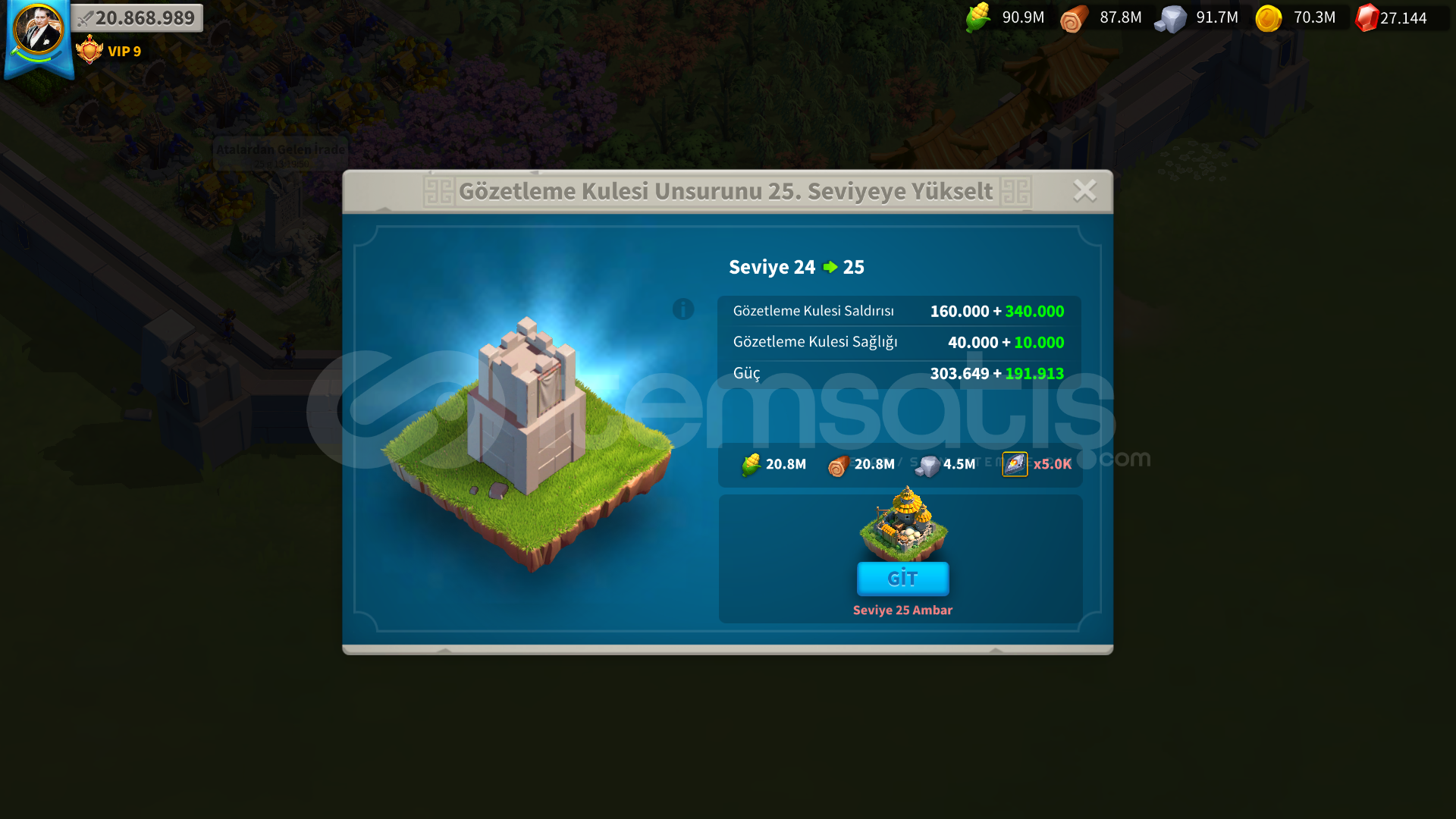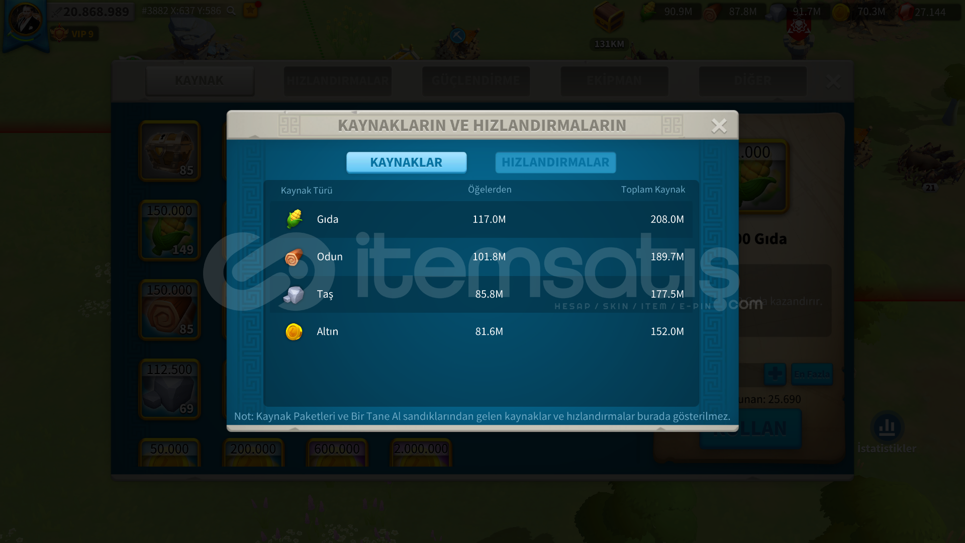Öncelikle merhaba arkadaşlar.YAN KARAKTERİ 300K T3 VE 200K T1 MACILIGI OLAN FARM CANAVARIDIR. extre farm hesabına ıhtıyacınız yoktur.Hesap direk t5 odaklı geliştirilmiştir.inşaat : hisar 25 isteyen ; Ambar 24 - gözetleme kulesi 24- akademi 24 - hastaneler 24 ( 4 taneside ) bunların harici ful 25. seviyededir.hesapta 1b kaynak vardır. Vıp 10 sınırındadır satın alındıgında hemen ...