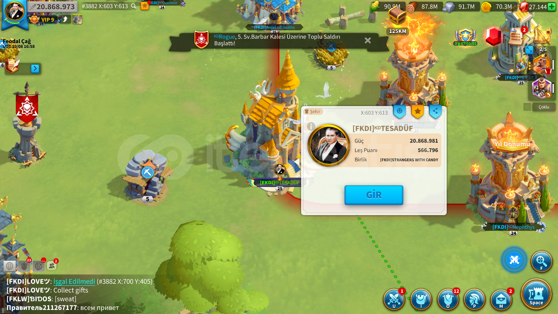 NOT : Hesapta 25 lenecek inşaat kalmadıgı ve farm araştırmasıda ful oldugu için tüm odak noktası askeri arastırma ve t5 dir. güçü ve bilgileri sürekli deişiklik gösterir.