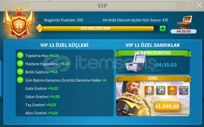 ★Güç :38.200M★ Vip 12 ye son 11k★Gün : 435★Vip: 11★Komutan: Nevsky – 1. William★Şehir Temaları (yalnızca efsanevi) ; Yok★Pasaport ; 12 Göçe Hazır★İttifak kredileri; 282k★Altın kafalar; 1★Ekipmanlar; 3★Askerler ; 1.785 M★RSS; 880-708-785-113★Hızlanmalar ; 12g★Hesabın bağlı olduğu bağlantılar; apple★Eylem Puanl...
