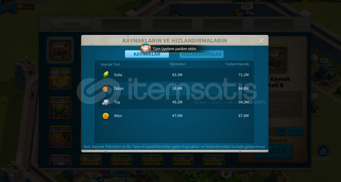 Kvk1 girmemiş hesap daha 🛡 Komutanlar : sun tzu-bjorn💪 Güç : 7m⚡ Hızlandırma : evrensel 20 gün+ fazlası 📦 Kaynak (Rss) : fotoğrafta mevcut 🎖 VIP :vip 10 40k lazım🛂 Pasaport : 605k kredi var alınabılır_🏅 Altın Heykel : 90_⚔ Efsanevi Ekipman :🏙 Şehir Teması : var 🔗 Bağlantı: Mail-Güvenli Devir boş ...