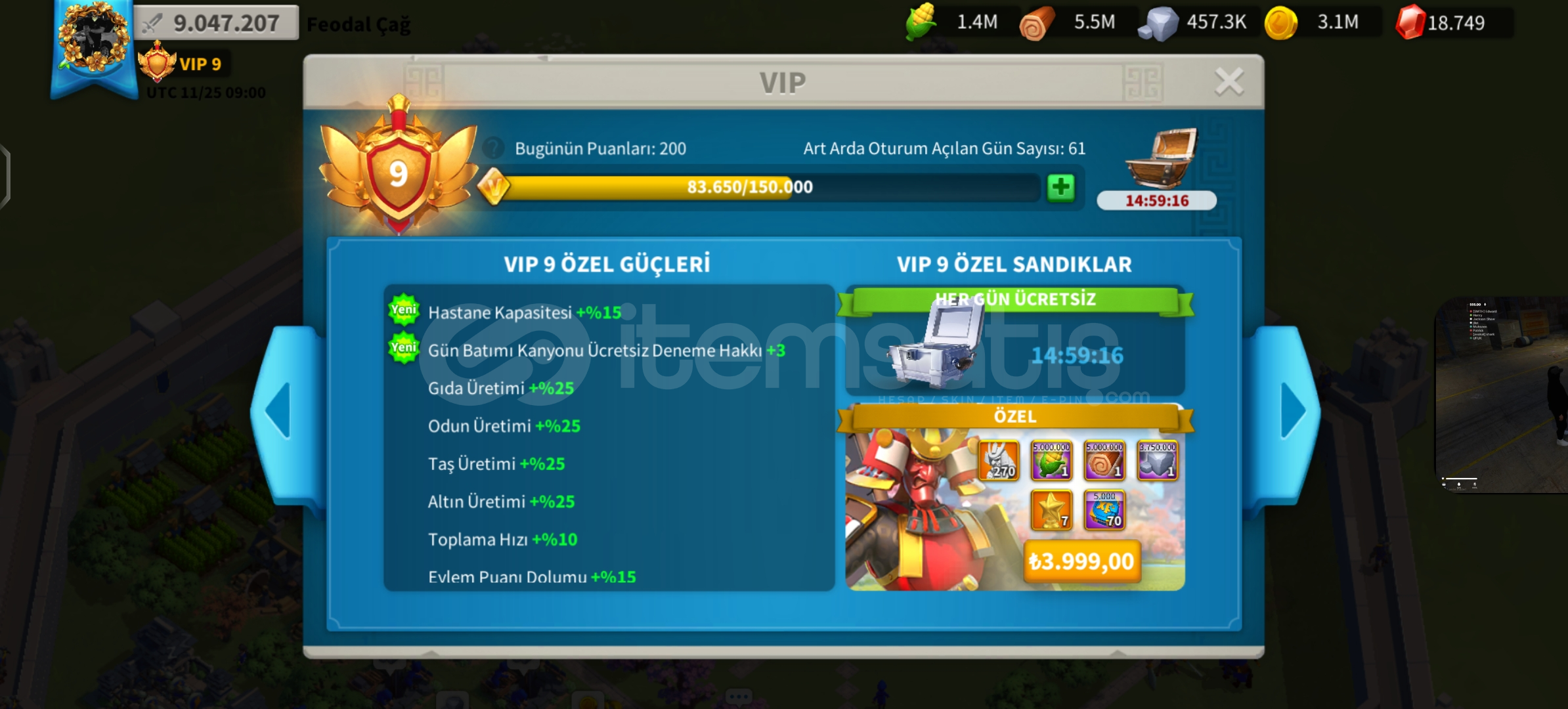 50 günlük krallıkta satılıkkrallıkta 90 - 100 sıradaekipmanlar full sayılırvip 10 için cevher toplanıyorekonomi techno neredeyse fullhatasız hesaptır78 altın kafaşükran günü etkinliği +30 altın kafa 150k t4 süvarihesap süvari hesabıdır1 tane karakterler kısmında farm hesabı bulunmaktadır 500kkvk için biraz hız ve kaynak toplaması yeterlidi...