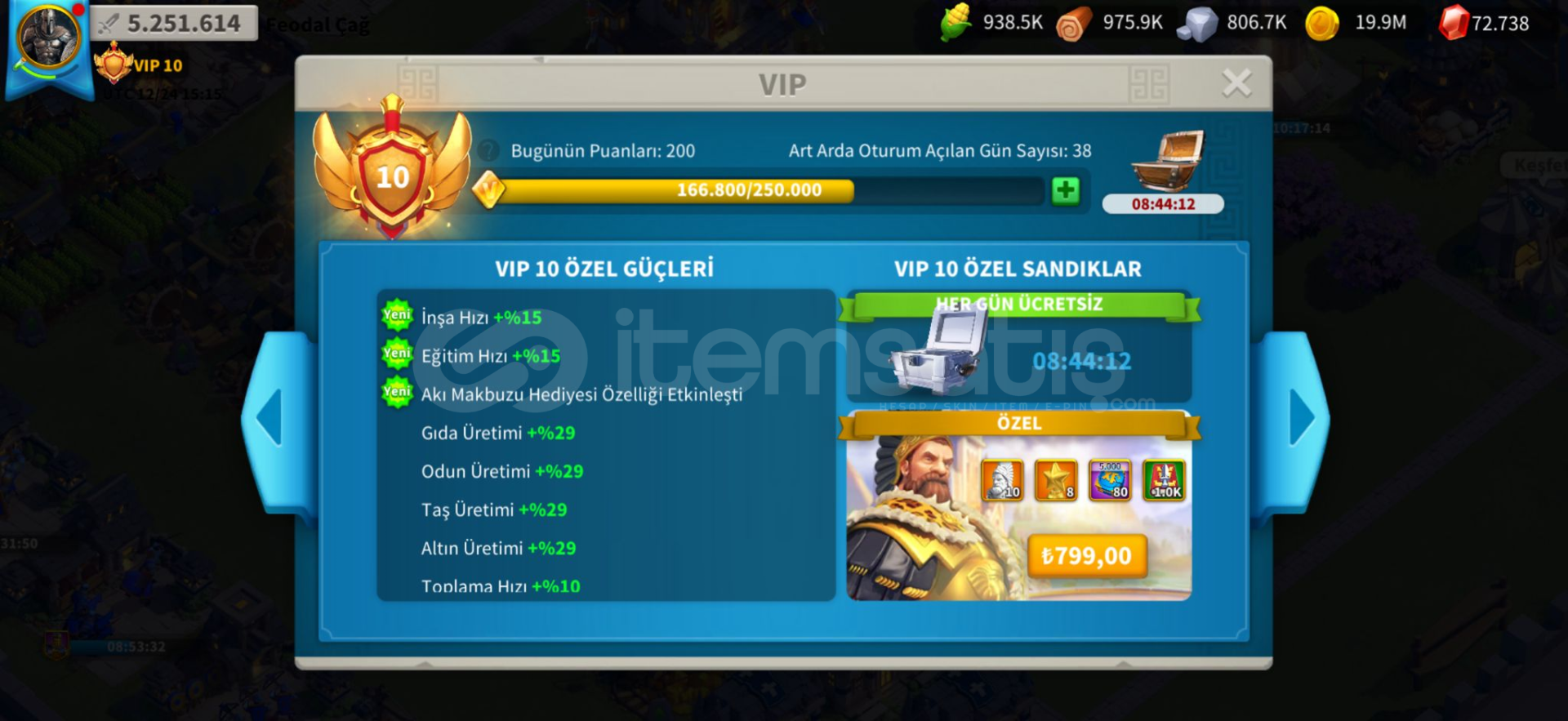 3968 | 114 ALTIN KAFA | VIP 10 | 72K ELMAS | KVK 1 İÇİN FULL HAZIR HESAP