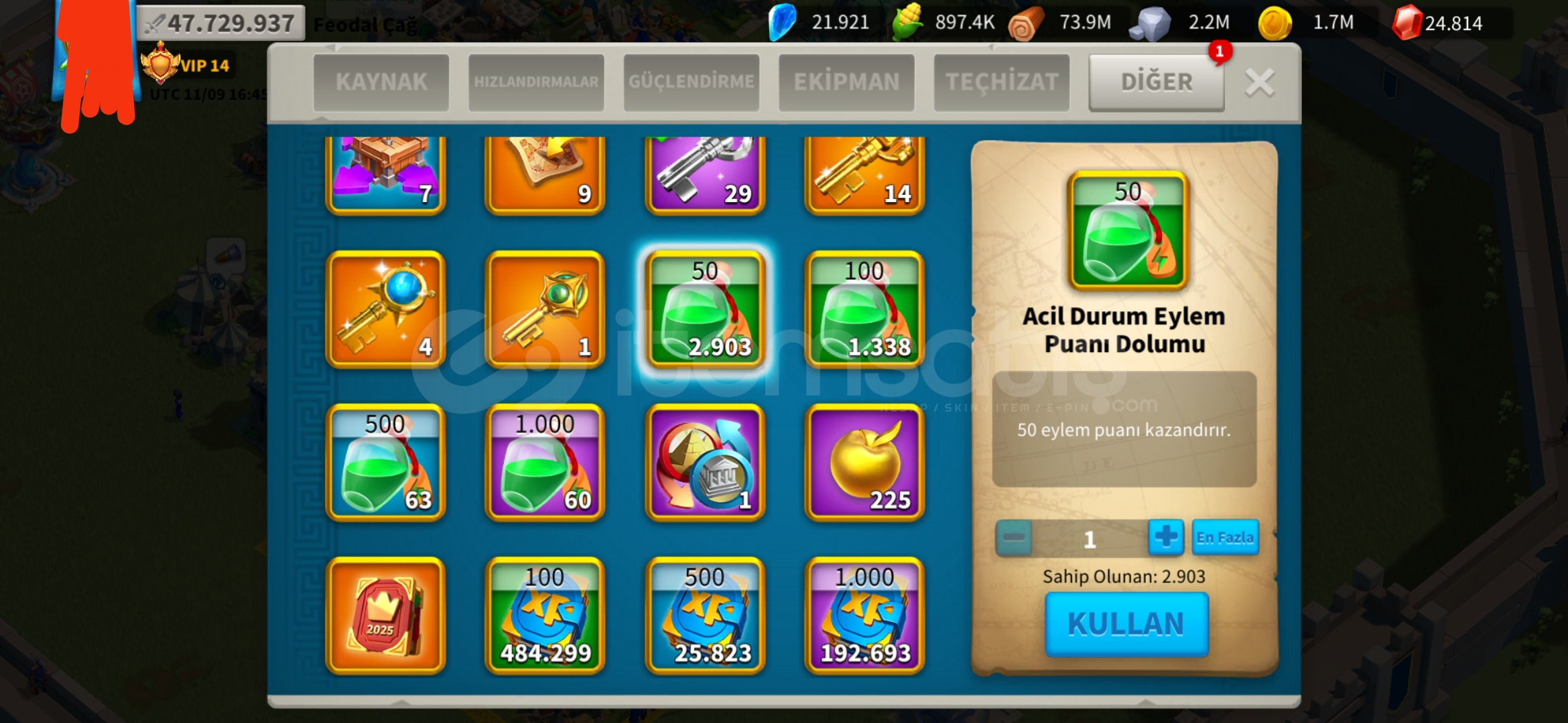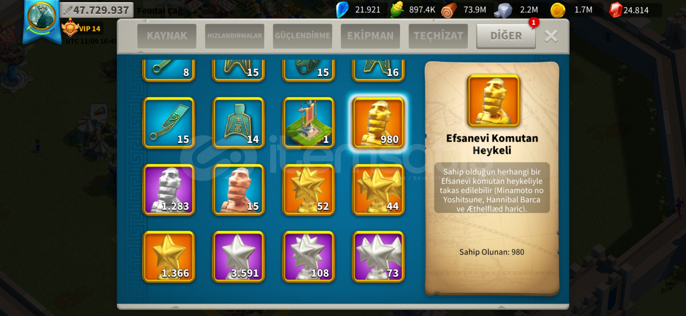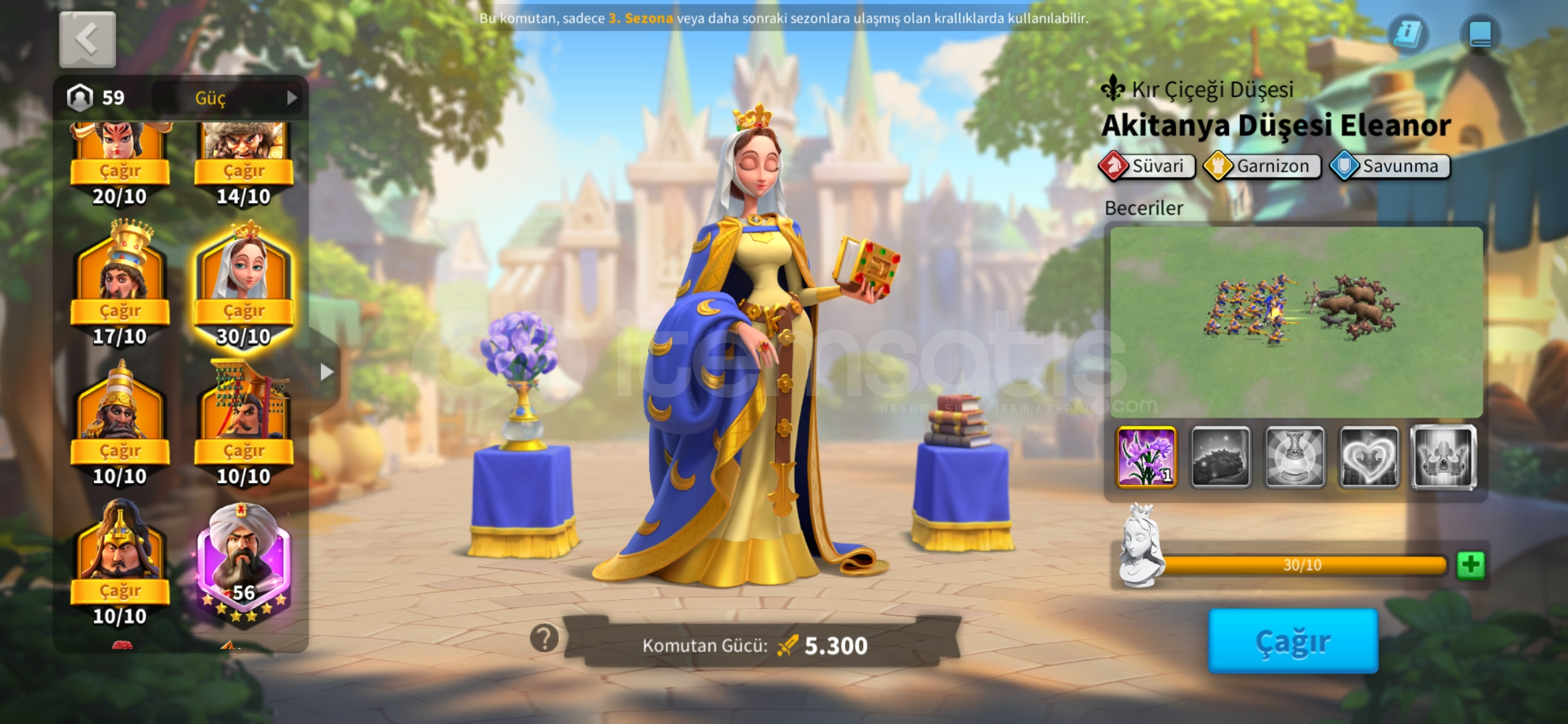 398 günlük hesapKVK 4 Dönebilen harika genç T5 hesap satılıktır.Alacakaranlık Çöker efsanevi kale teması vardır.(Beceri Hasarı +5)Hızlandırma ve kaynak resimlerde mevcuttur.980 altın kafa vardır.Vip 15 olmaya çok yakın.