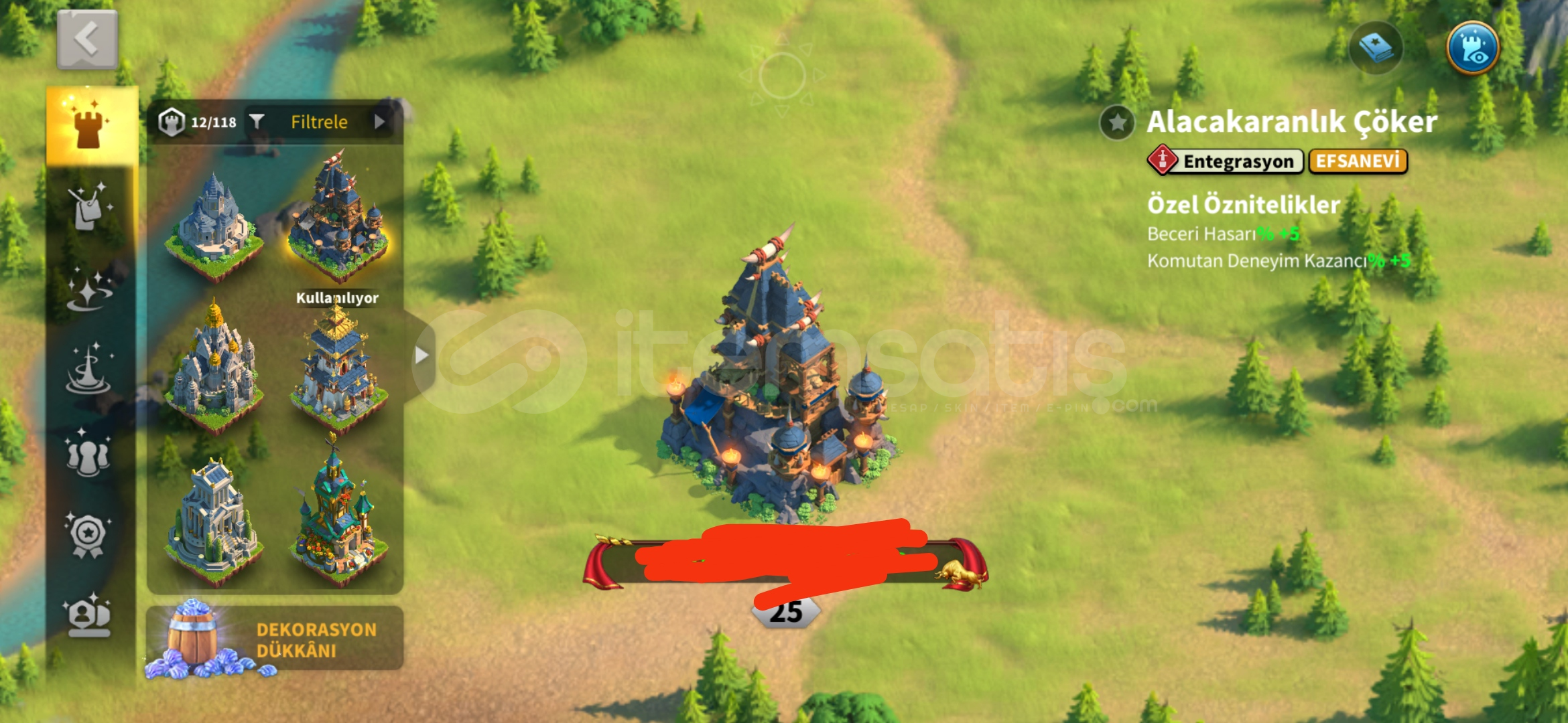 Alacakaranlık Çöker efsanevi kale teması vardır.(Beceri Hasarı +5)
