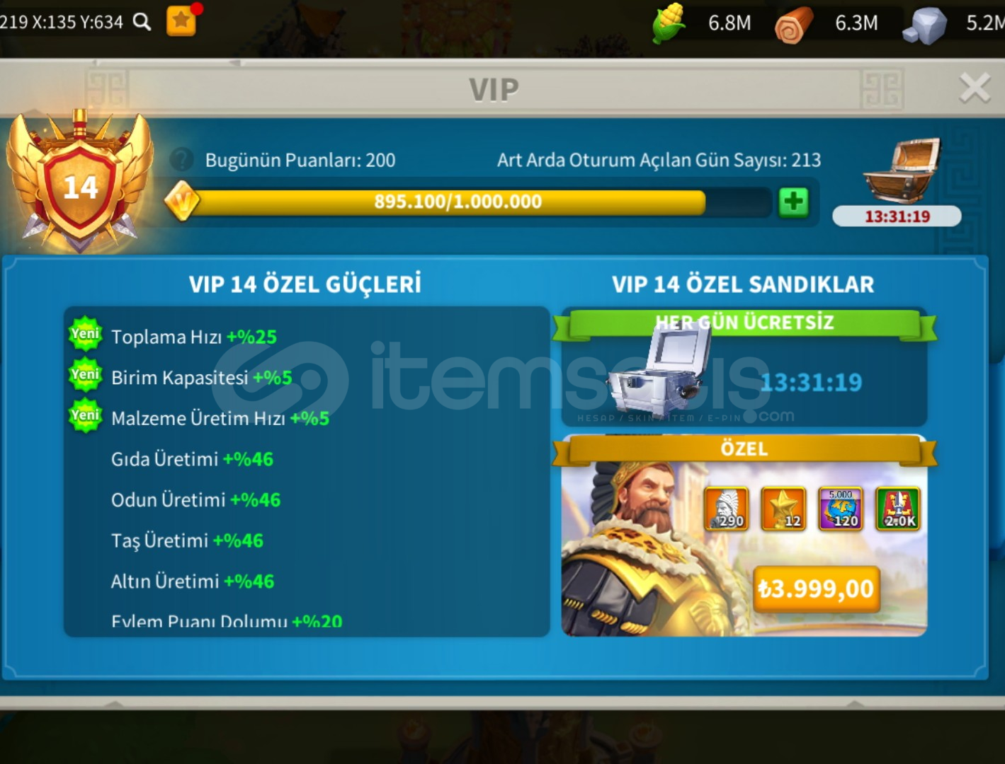 Hesab 40m gucunde 277 k t5 i var bir onceki kralliğinin kvksi bitince +200k t4 gelecek
