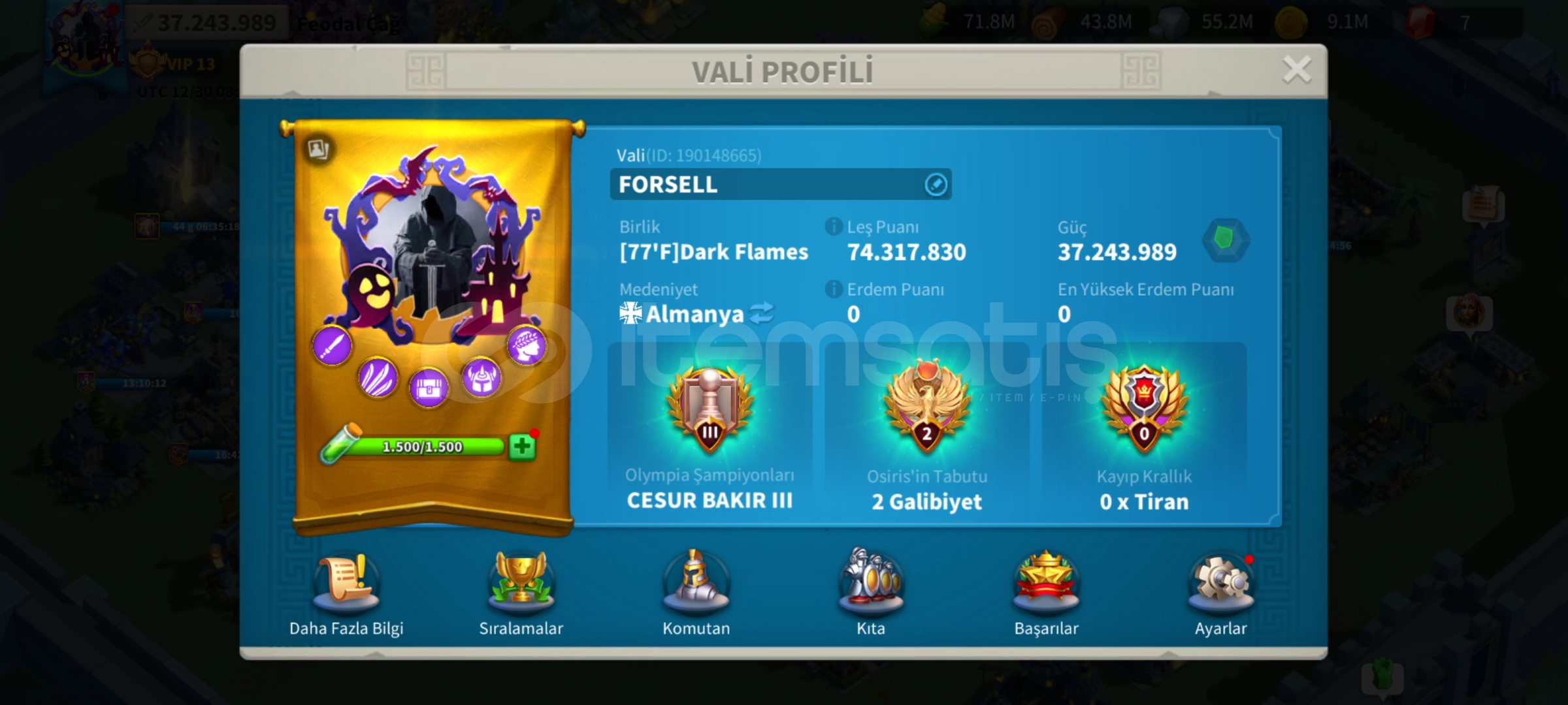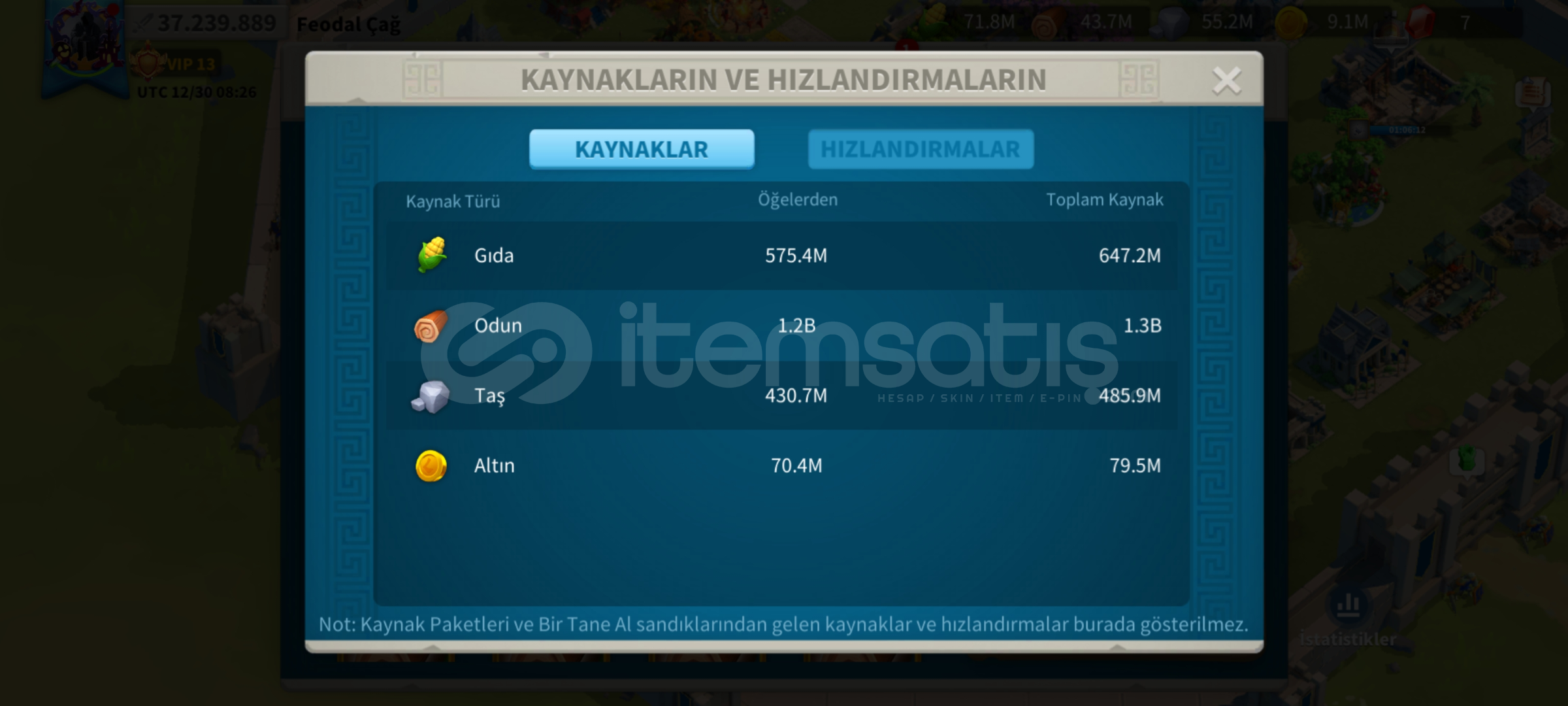 RSS PARASINA KELEPİR BAŞLANGIÇ HESABI İLK GELEN ALIR ● Full Komutanlar : MİNO AETFLH ATİLLA 5-5-5-4 - HUO QUBING 5-5-5-1 - HANIBAL 5-3-5-3● Güç :38m● Hızlandırma :42g● Kaynak (RSS) : 2b ● Eylem Puanı (AP) :2829 tane 50'lik 520 tane 100'lük● Öldürme Noktaları :74m● Ölen Birlik :1.2m● VIP Seviyesi :13● Pasaport :13● Gümüş Kredi : 300k●...