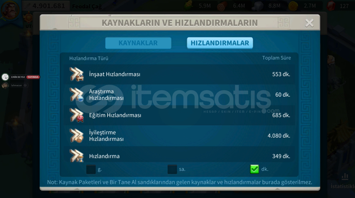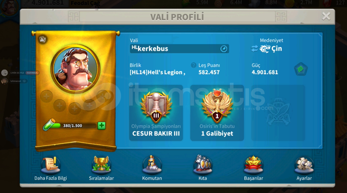 4.900.000 GÜÇTE 3914 SERVERDE SATILIK HESAP