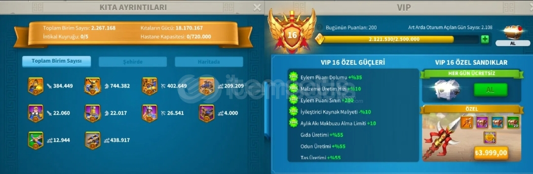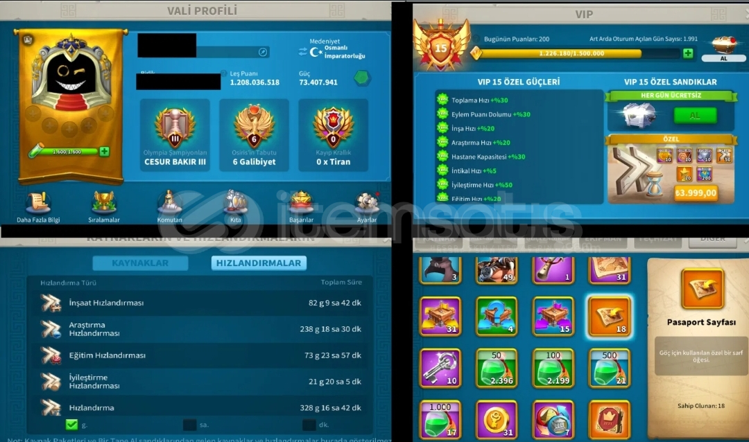 6 SETLİ TEK MAİLDE 2 T5 Lİ DOLU FIRSAT HESABIHESABIN ANA SETLERİ SAĞLAMDIR.Sağlam Bağlantı - Sorunsuz TeslimatTEK MAİLDE 2 T5 HESAP VARDIR !!.BİRİNCİ HESAP76 M Güç 3.2B Leş Puanı 🔥2.2M Asker 💯VIP16 ( VİP17 SON 400K VİP ) ❗İlahi Mesken & Alacakaranlık Efsanevi Temaları 🎁Toplam 1000+ Gün Hız 🔥TOPLAM 35 EFSANEVİ EKİPMAN & 8 KRİT&#...