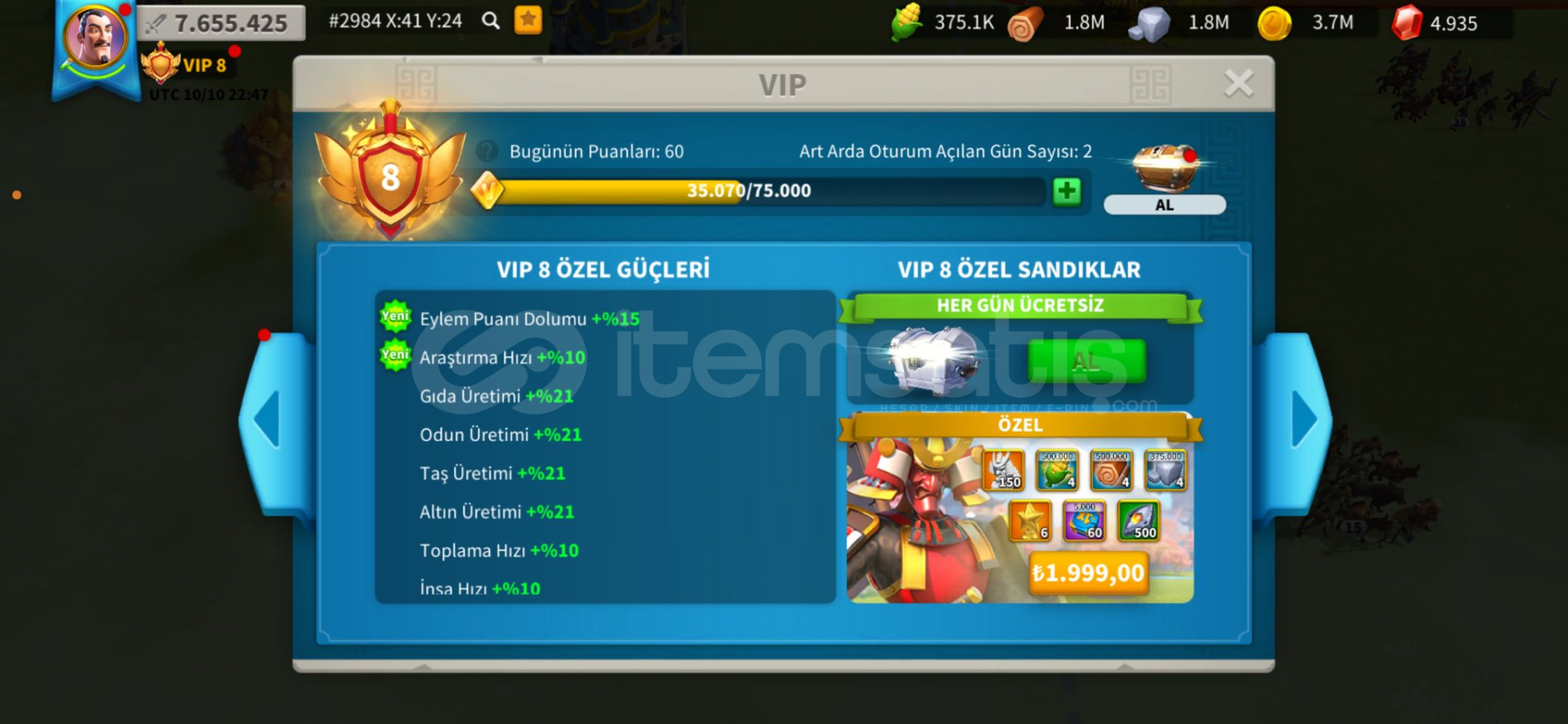 Askerler 4. seviyeye yükseltilebilir araştırma yapılarak şuanda yükseltiliyor siz hesabı aldıktan sonra dahada güçlendirebilirsiniz