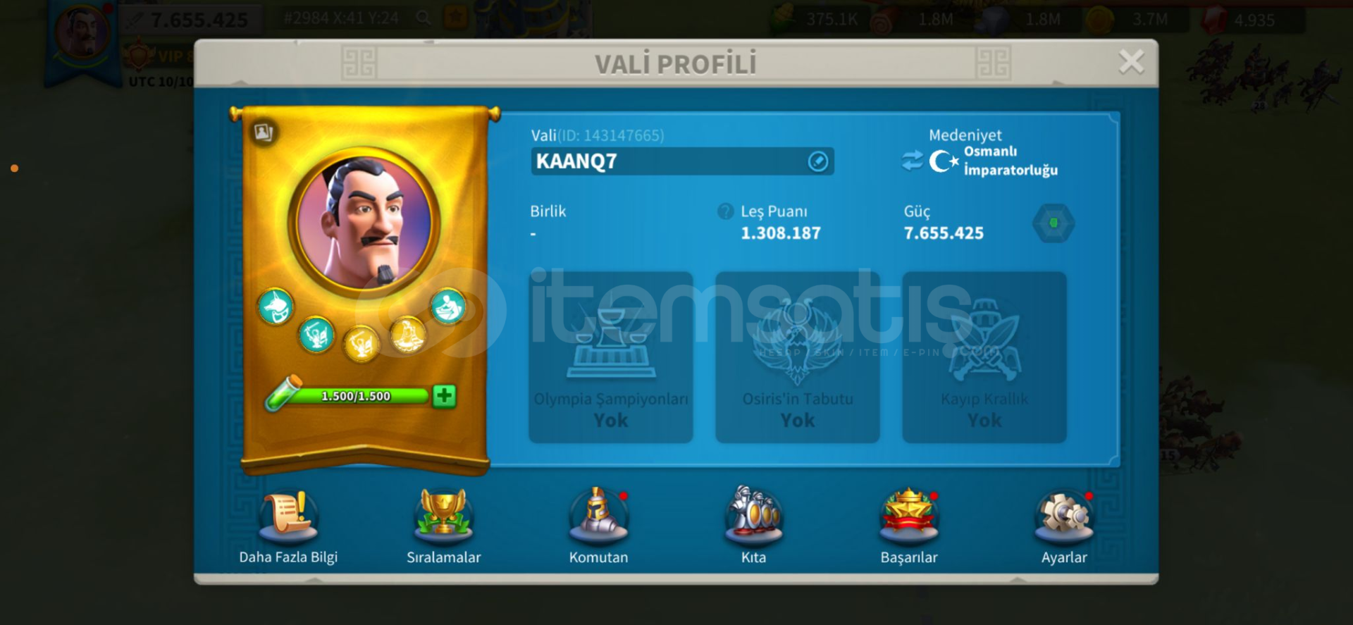 Medeniyet: Osmanlı İmparatororluğuDiğer bilgileri fotoğrafa ekledim hepsiniHesabın maili ve oyundaki şifresiyle birlikte teslim edicemSosyal medya hesapları bağlı ama kaldırılabiliyor mail değiştirilemiyorBende hesaba yeni giriş sağladığım için değiştiremiyorum hesapta bir süre oynadıktan sonra hepsi kaldırılabilirAskerler 4. seviyeye yükseltilebilir araşt...