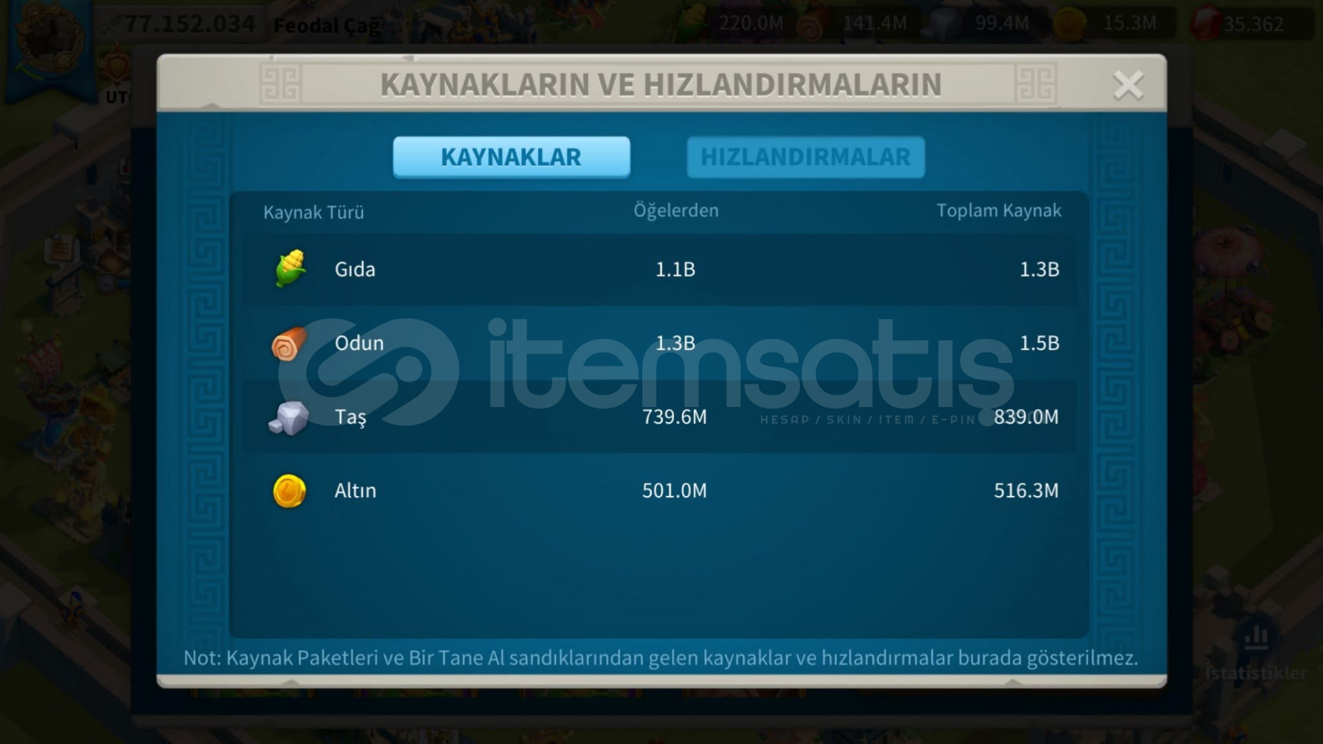 ● Rss  : 1.1b gıda 1.3b odun 743.6m taş 505m altın toplam 3.7b