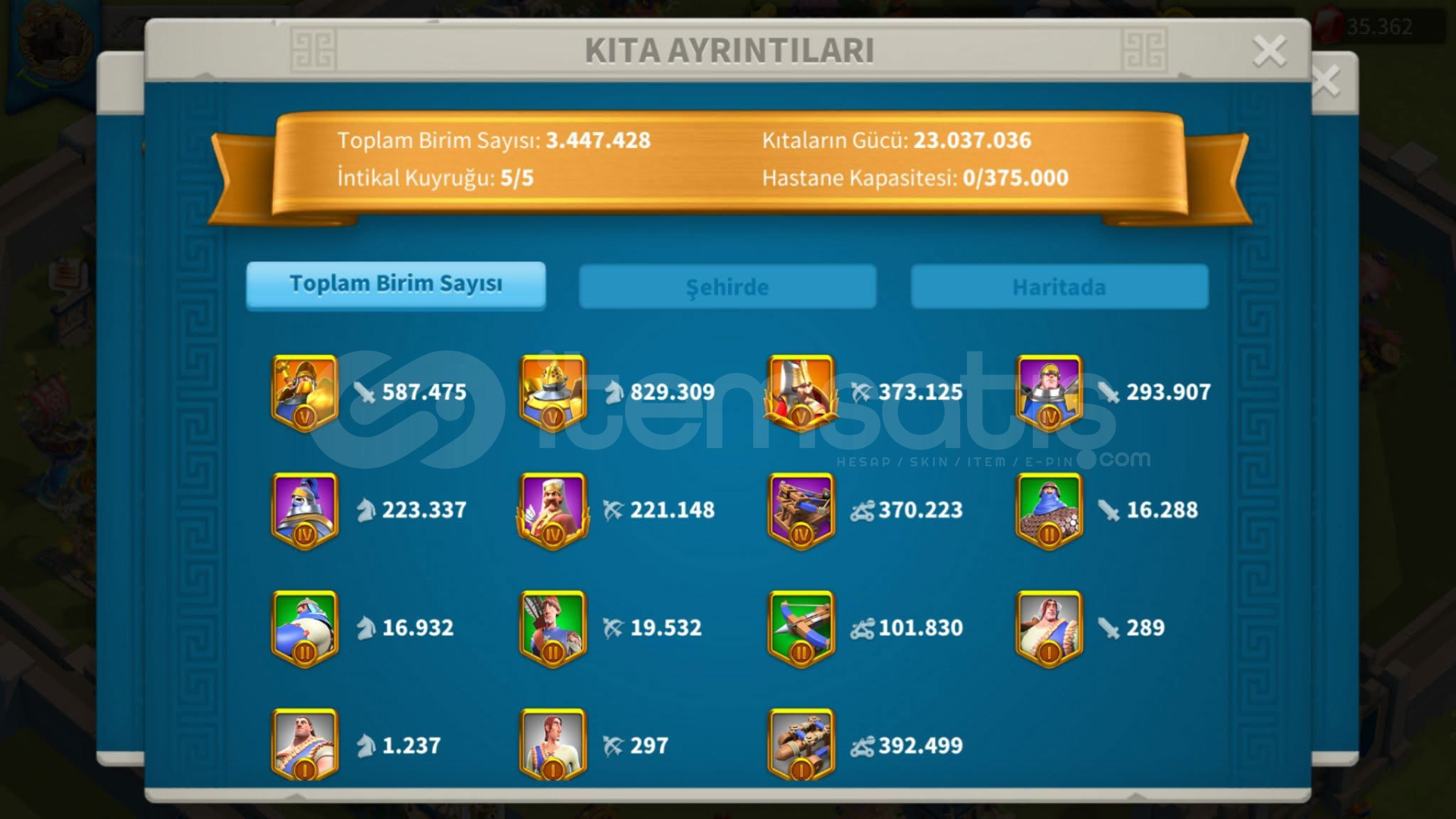T5 GELİŞİME AÇIK HESABIMIZ SİZLERLE GÜÇ DÜŞERSE RAHAT GÖÇ EDEBİLİR! ● Full Komutanlar : Qubing - Arthur -Scipcio - ysg - nevsky -● Güç : 77.223.468● Hızlandırma : 114 gün genel 66 gün eğitim● Rss  : 1.1b gıda 1.3b odun 743.6m taş 505m altın toplam 3.7b● Eylem Puanı : 50k● Öldürme Noktaları : 214.826.000&#...