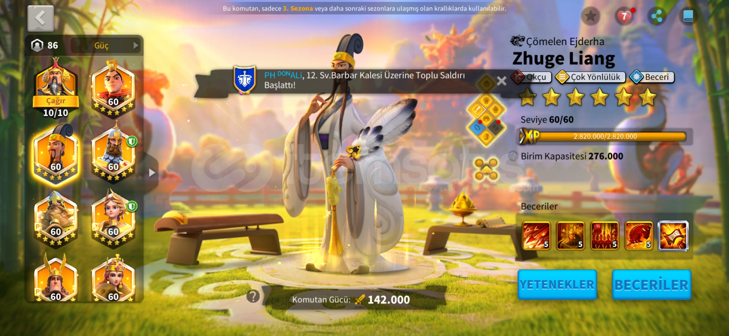 ● Full Komutanlar : qubing nevsky jean of arch ragnar herman zhuge toplama komıtanları maxtır