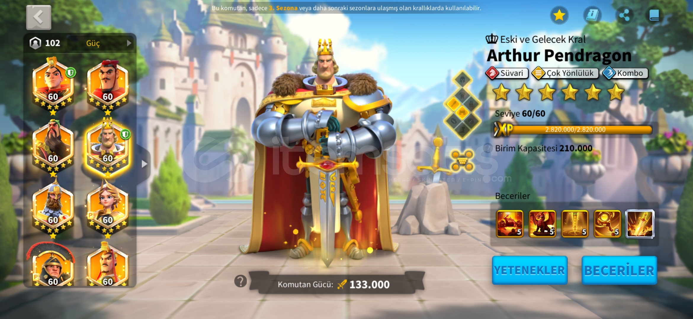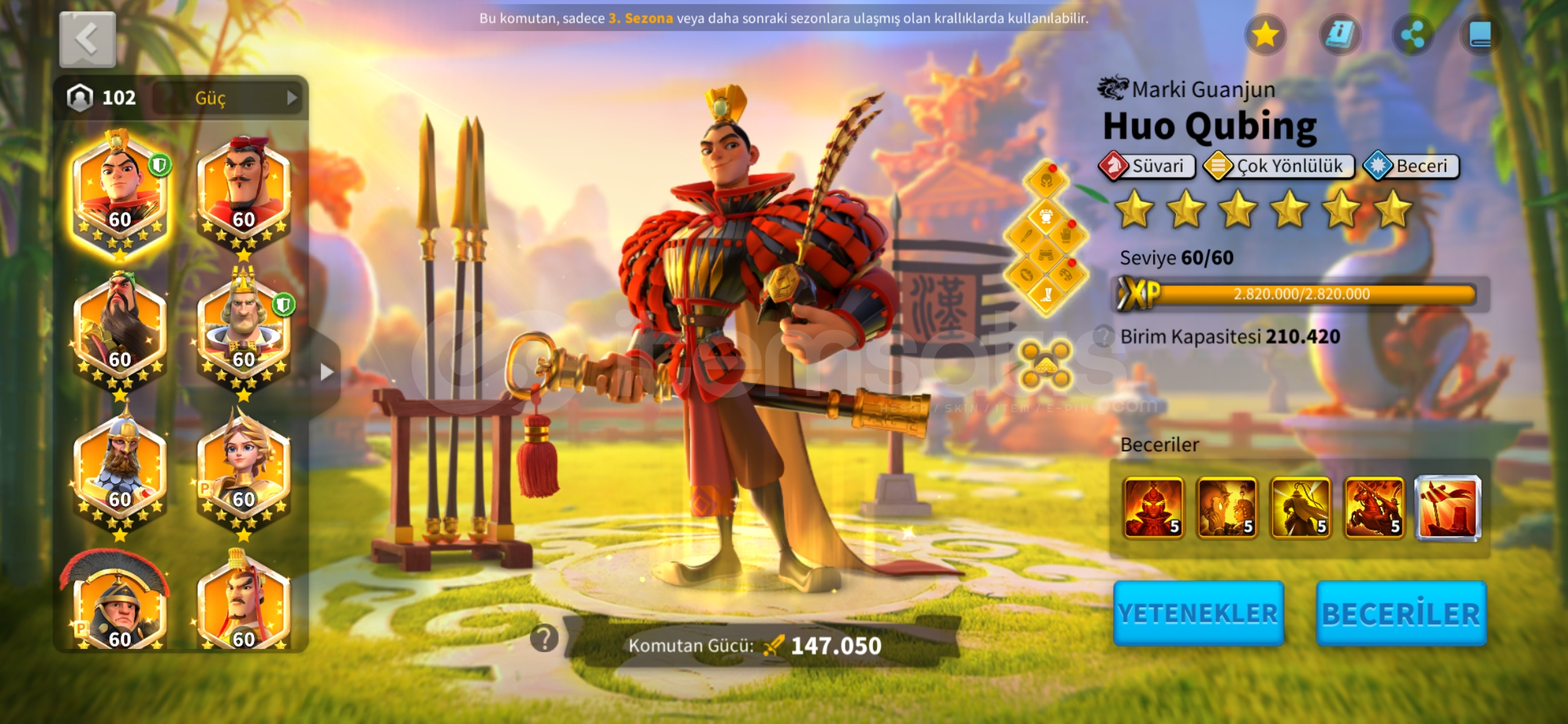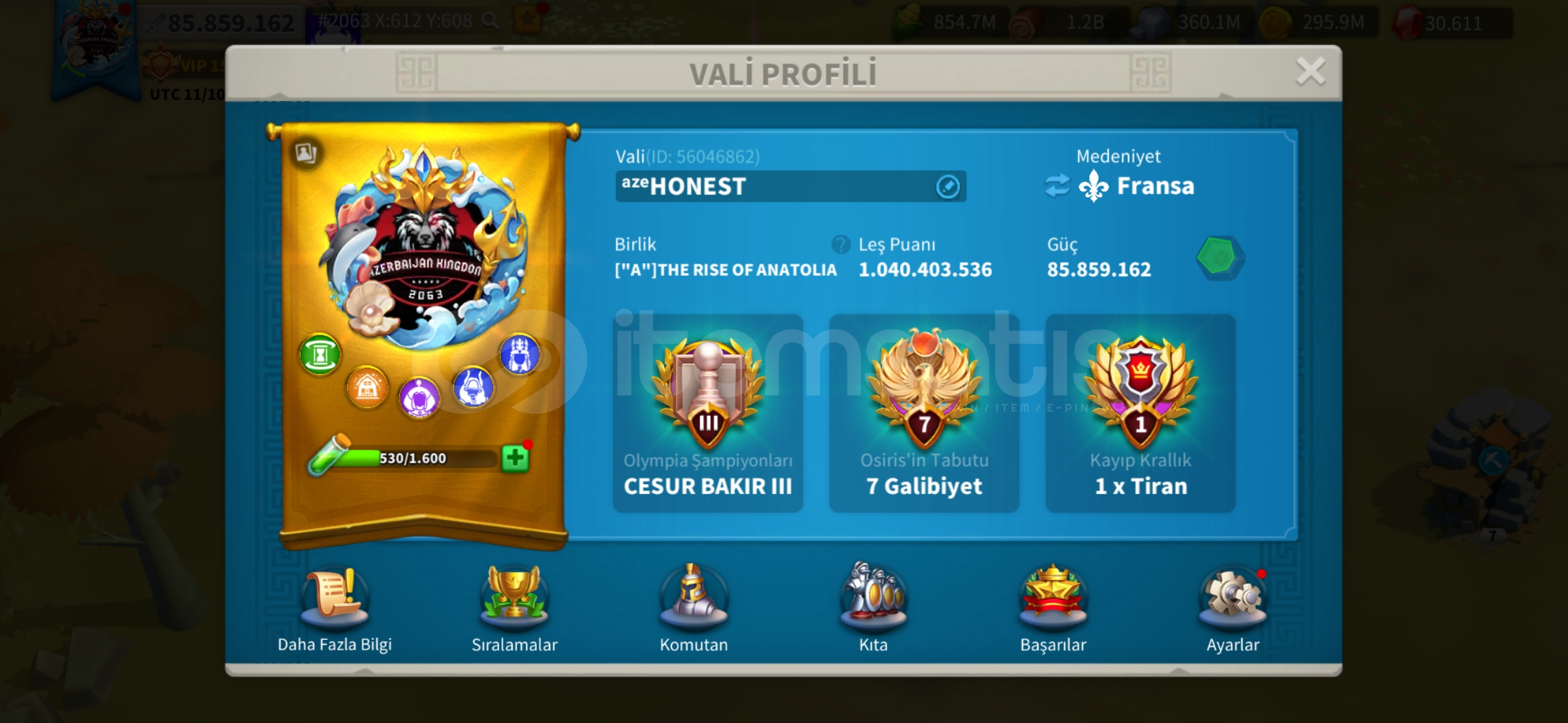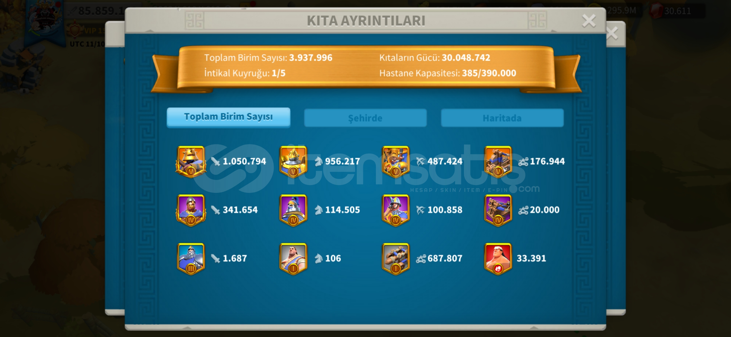 *_VİP15 TATİL BİLETİ İLE HAZIR GÖÇ EDEBİLİR T5 MİX HESAP !★Güç : 85 M★Gün : 1239★Vip: 15★Komutan: Jeanna Prime - Huo - Liu Che - Arthur - Bai - Guanyu - İskender - Nevyks - Africanus - Aetfield + T.K★Şehir Temaları (yalnızca efsanevi) ; Peoseidiyonun mabedi (30gün) zamanın kumları (15 gün)★Pasaport ; 27 tatil bileti verilcek★İttifak kredileri...
