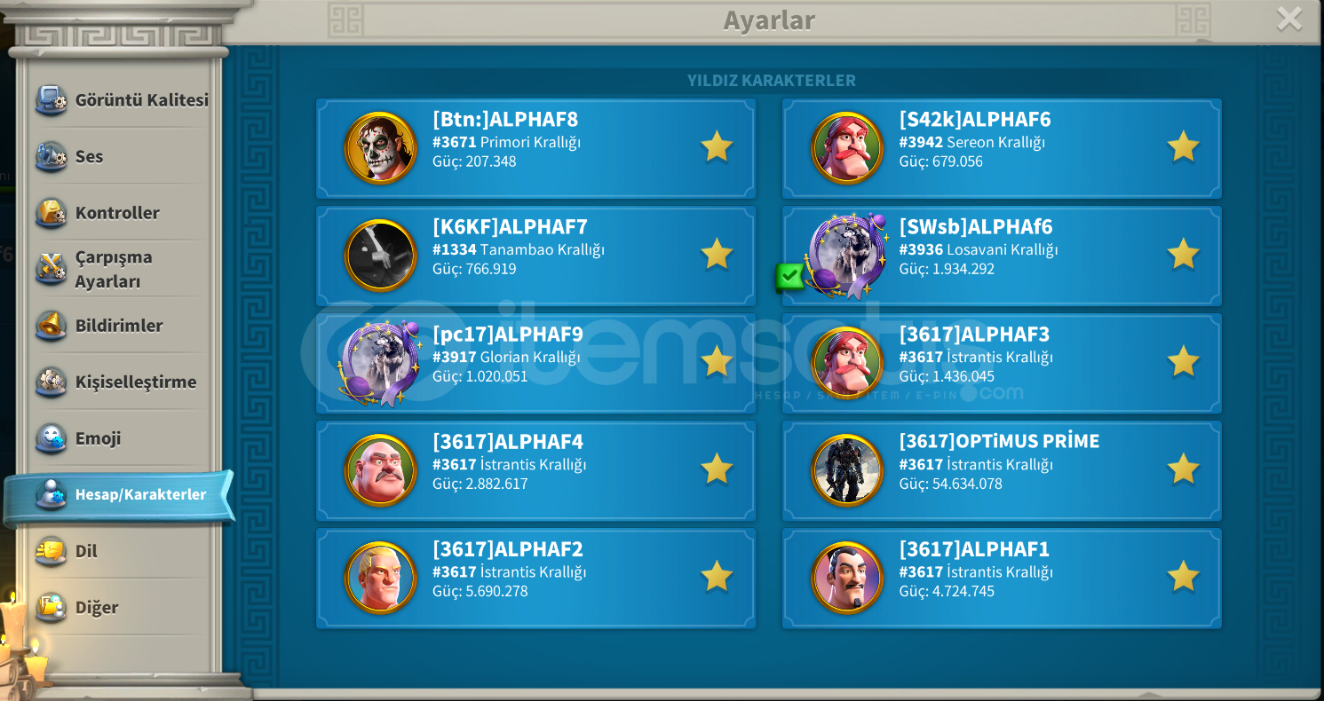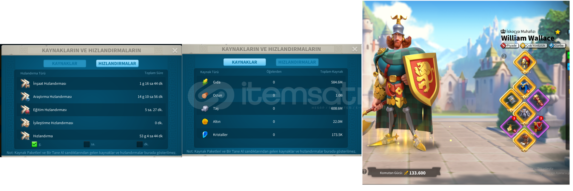 SÜVARİ-OKCU-PİYADE T5 AÇIK100 GÜNE YAKIN SPEED'İ VAR2K ELMAS9 FARMLI1 ANA HESAP700K T5 ASKER600M KP450 GÜNLÜK HESAPMOR KOMUTANLAR FULL3 SARI FULL KOMUTANGORGOWWAETLİU- 5-5-5-3BAİ-5-5-3-1MATTHİAS-5-5-4-11 FULL FİYADE SARI SET (2. SETE BAŞLANMIŞTIR)150 MOR KAFA102 GOLD KAFATEKLİFLERE AÇIKFARMLARDA ORTALAMA 100M KAYNAK STOKLARI VARDIRFARMLAR KALE SEVİYELERİ22-22-20-20-19-18-16-16-144 TANE FARM GÖ&Cced...