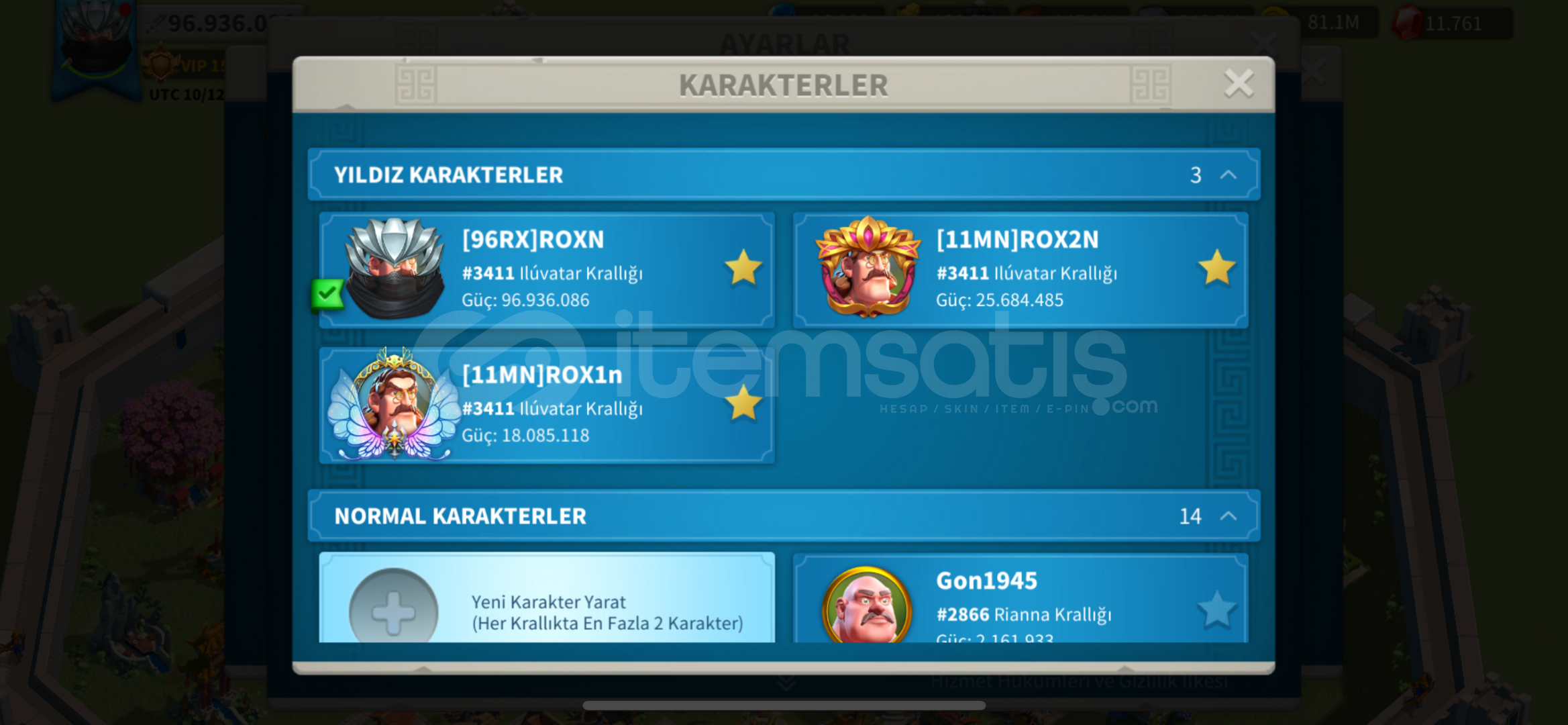 Vip 16 ya çok az var Full T5 4 Kıta BalinaYanında sağlam Farm hesapları hazır