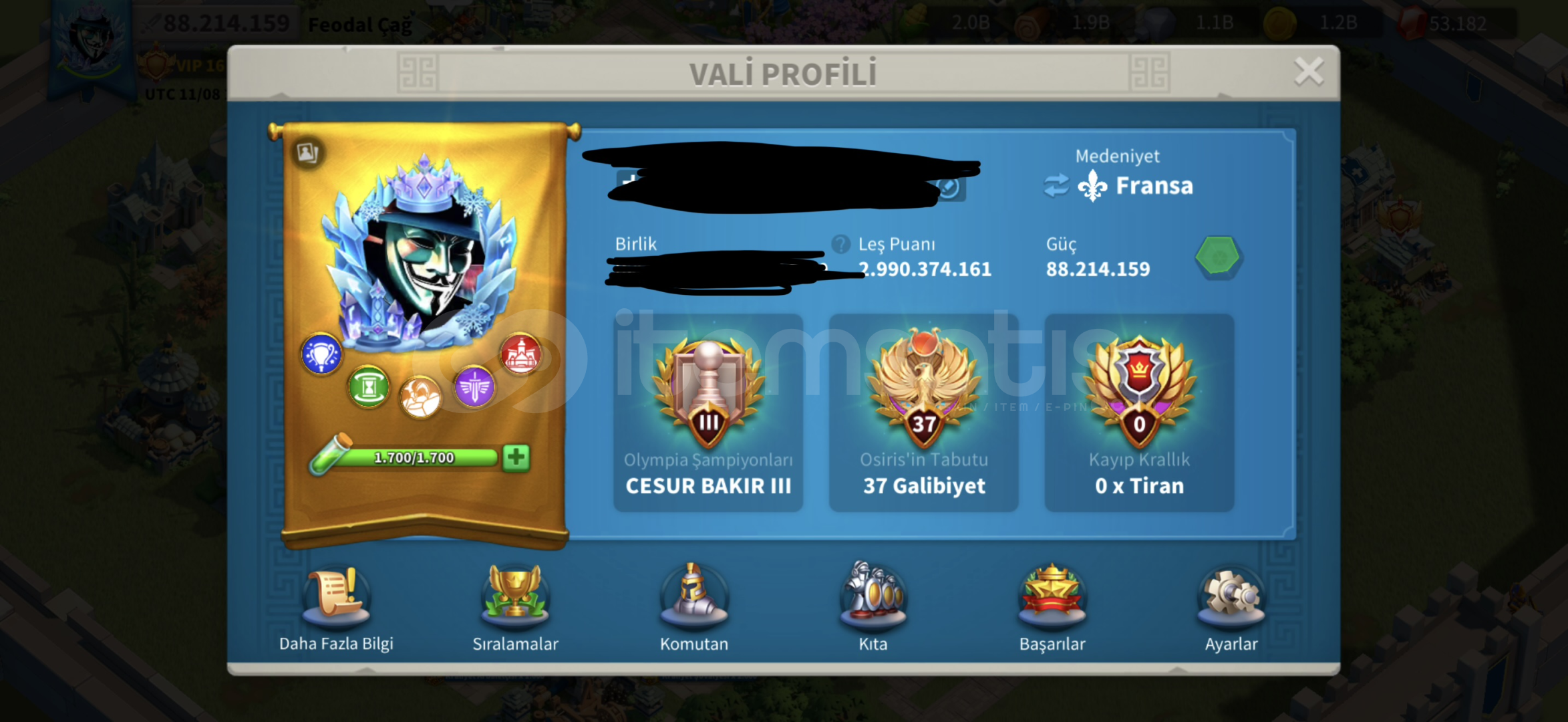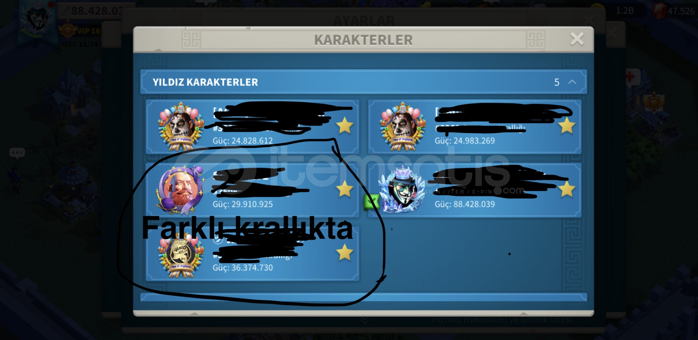 ❗️Bu Kadar Dolu Çanta Hiçbir Yerde Yok ! ❗️❗️ ❗️ 28 B + RSS / 2555 Gün Genel / 450 Gün Diğer Hızlandırma ❗️ ❗️★ ★ Güç: 88 M★ Leş Puanı : 3B★ VIP: 16 (225k sonra 17) 56k cevher var★ Hızlandırma : 2555+450 Gün★ Kaynak : 28B + ★ Efsanevi Ekipman: 30 / 12 Kritik ★ Pasaport : 14 ...