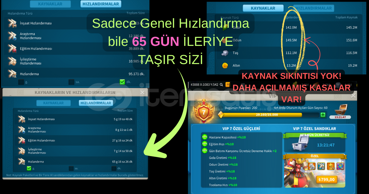 Arkadaşlar herşeyi görsellerde ekledim.Belki güç gözükmemiştir. Şimdilik 2,4 milyon.KRALLIK: IRANTO BÖLGESİ / 3888 Filam Krallığıİlaveten önem arz eden bir kaç şeyi yine de yazayım buraya:42.671 CEVHER (güncel)432 Milyon Kaynak(detaylar görselde)116 GÜNLÜK Hızlandırma (yalnızca GENEL HIZLANDIRMA bile 66 GÜN)ANAHTARLAR:Altın: 150Gümüş: 97Ek...