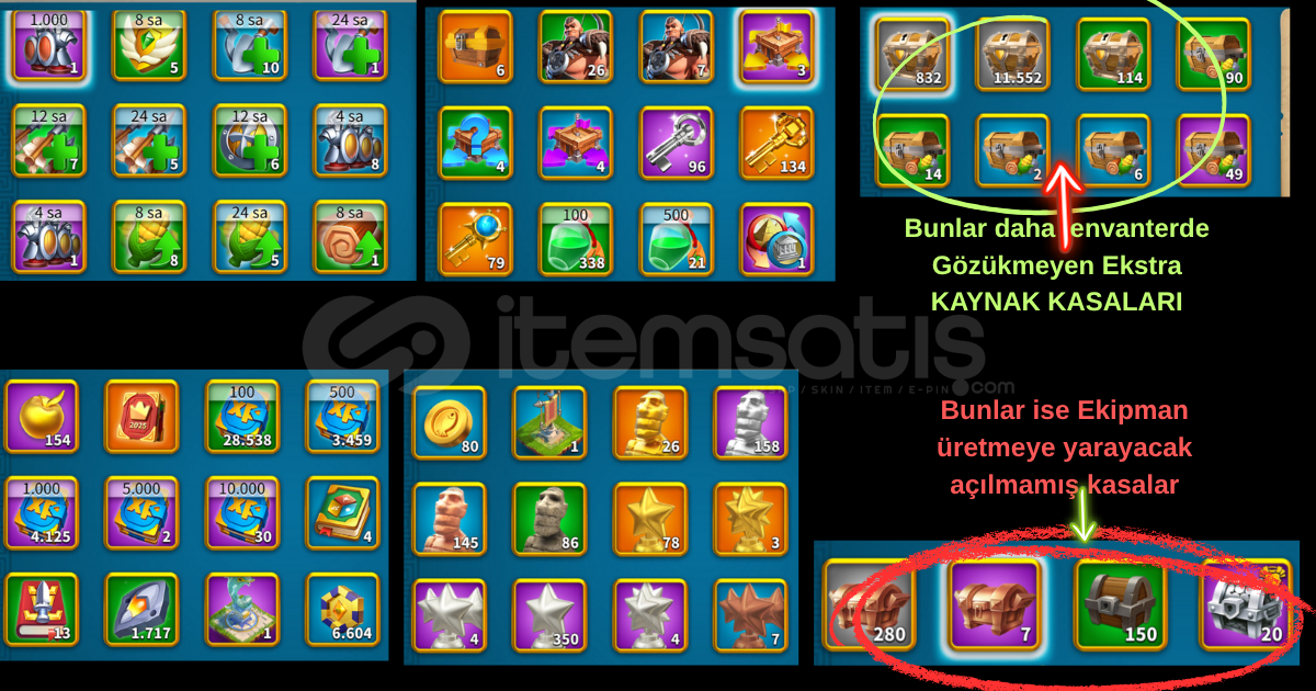 NOT: Bu Hesabın asıl amacı, benden sonra bu hesaba geçecek kişinin zevkine ve oyun stratejisine bağlı olacak şekilde ilerlemesine destek olmaktır. Yani siz, hazır ve kısmen kullanmak zorunda kalmadan, kendi istediğiniz şekilde bir ilerleyiş sağlayabileceğiniz türden hesap almış olacaksınız. Taktir edersiniz içeriğe baktıgınızda da bunu anlamak mümkündür. Bu sebeple ölücüler yazmasın. Kimse cahil değil. kabataslak yaptığım hesapta; bu envanterle belediye binasını 22'ye bir anda cıkarmanız mümkündür. Ya da dilerseniz askeri teknolojıde ılerlersınız. Kredi ile ister VIP veya ister yükseltmelere destek atarsınız. Demem o ki kimse 'bu fiyata bu hesap olur mu' diye bir şey söylemesin lütfen!
