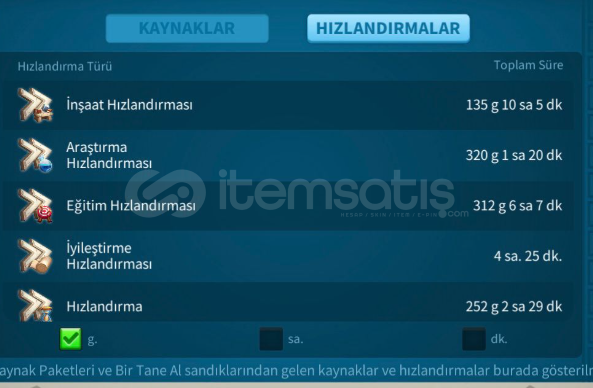 ★Hızlanmalar ;genel=255g eğitim=305g araştırma ve inşa=450g