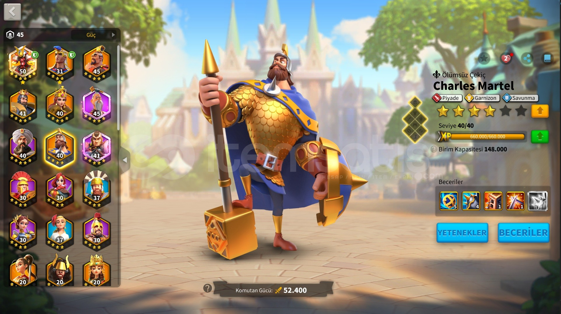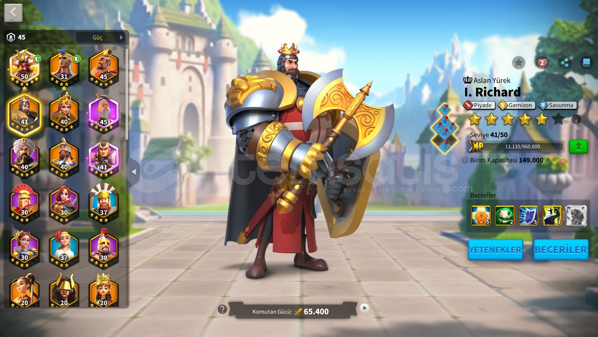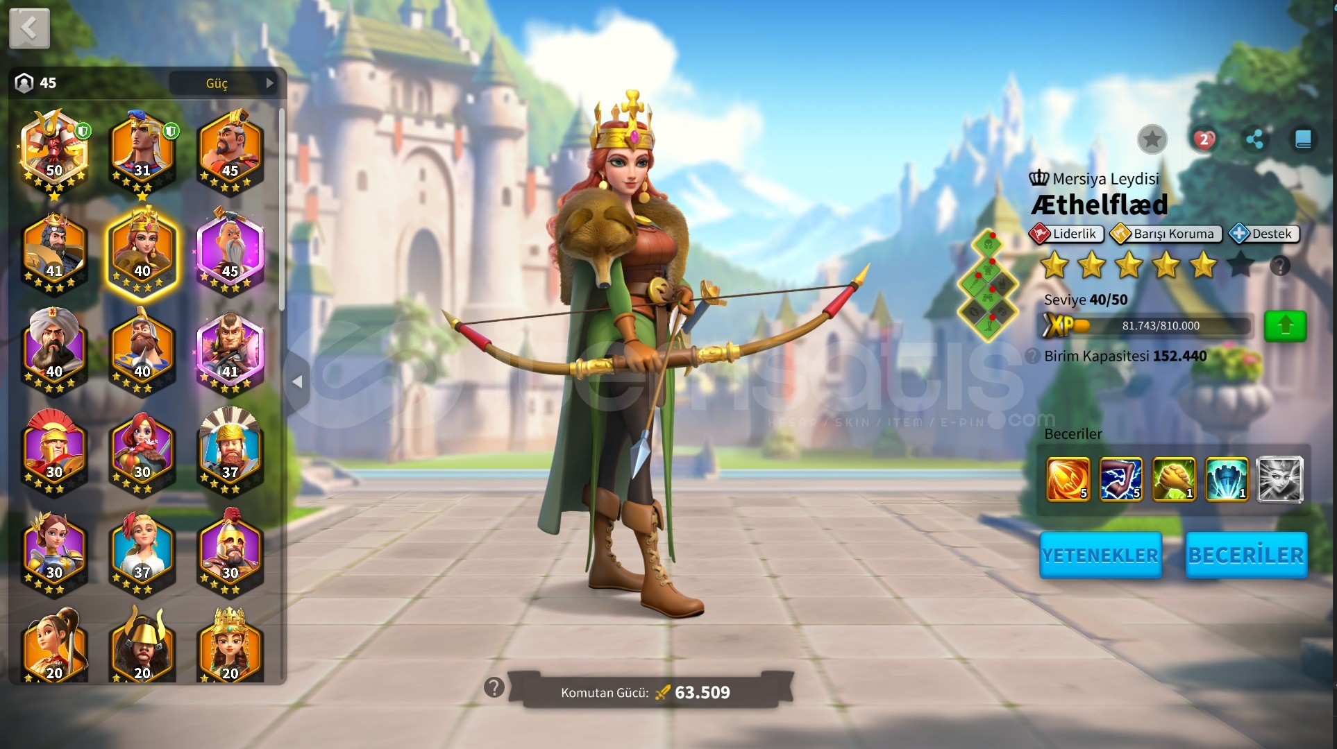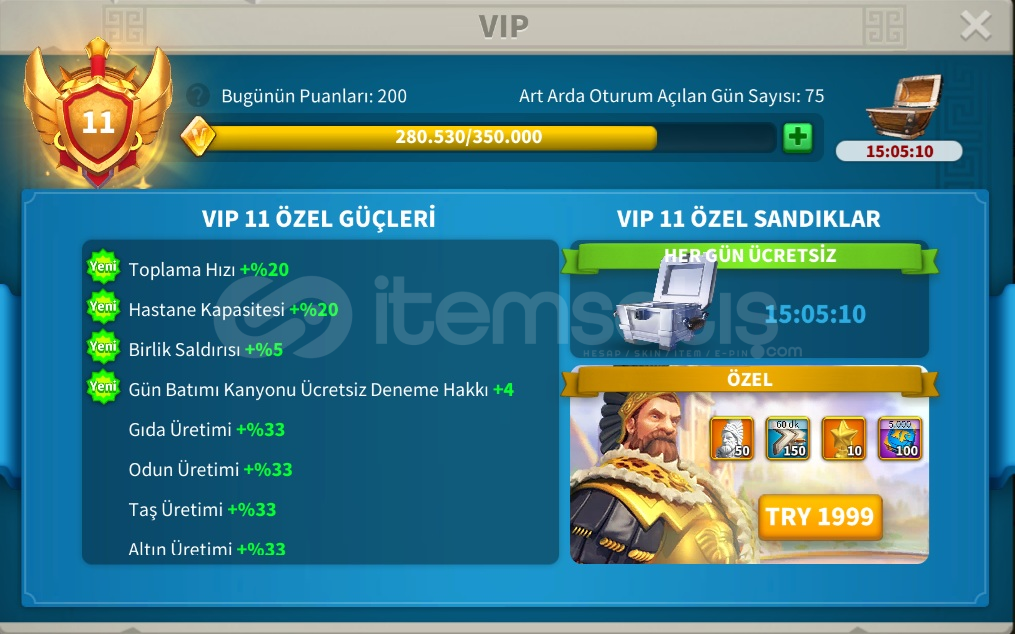 66 günlük krallıkta dolu hesap.VIP 11 - VIP12'ye son 70k+2 adet farm hesabıTop 3 birlikte kralın topraklarına erişimi var.2 Adet pasaport mevcut göç edebilir.Özellikler görsellerdedir.Mesaj atabilirsiniz.Güç : 9.2mMino : 5555Cao : 5551Eathfield : 5511Martel : 5411Richard : 5251Lohar - Sun Tzu - Baybars : 5555Toplama komutanları : 37 level