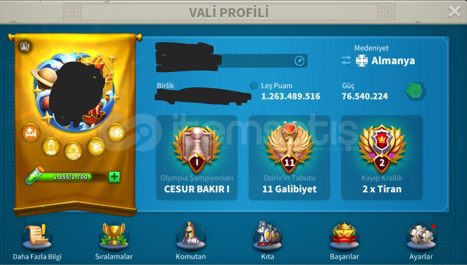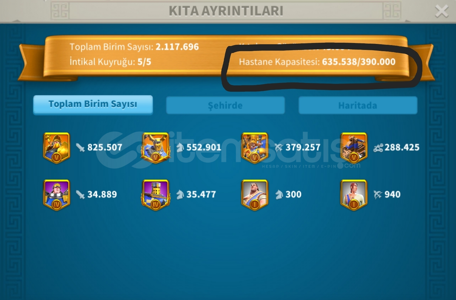 KANATLI YELKENLİ ZENİTH + 3 SETLİ DOLULAR DOLUSU VİP 16 KELEPİR HESAP76+ M Güç (Hastane 635K) 1.2 B Leş Puanı111 Komutan2,5+ Milyon ASKERVİP 16 Kanatlı Yelkenli Zenith (Ek Avantaj : En Nadir Zenithlerden +%12 Kıta Savunması) + İlahi Mesken ŞEHİR TEMALARI39K+ Cevher4B+ Karışık RSS Total 1200+ Gün HIZ3 Kıta Alana Çıkabilir Üst Düzey Ekipman Ve Te&cced...