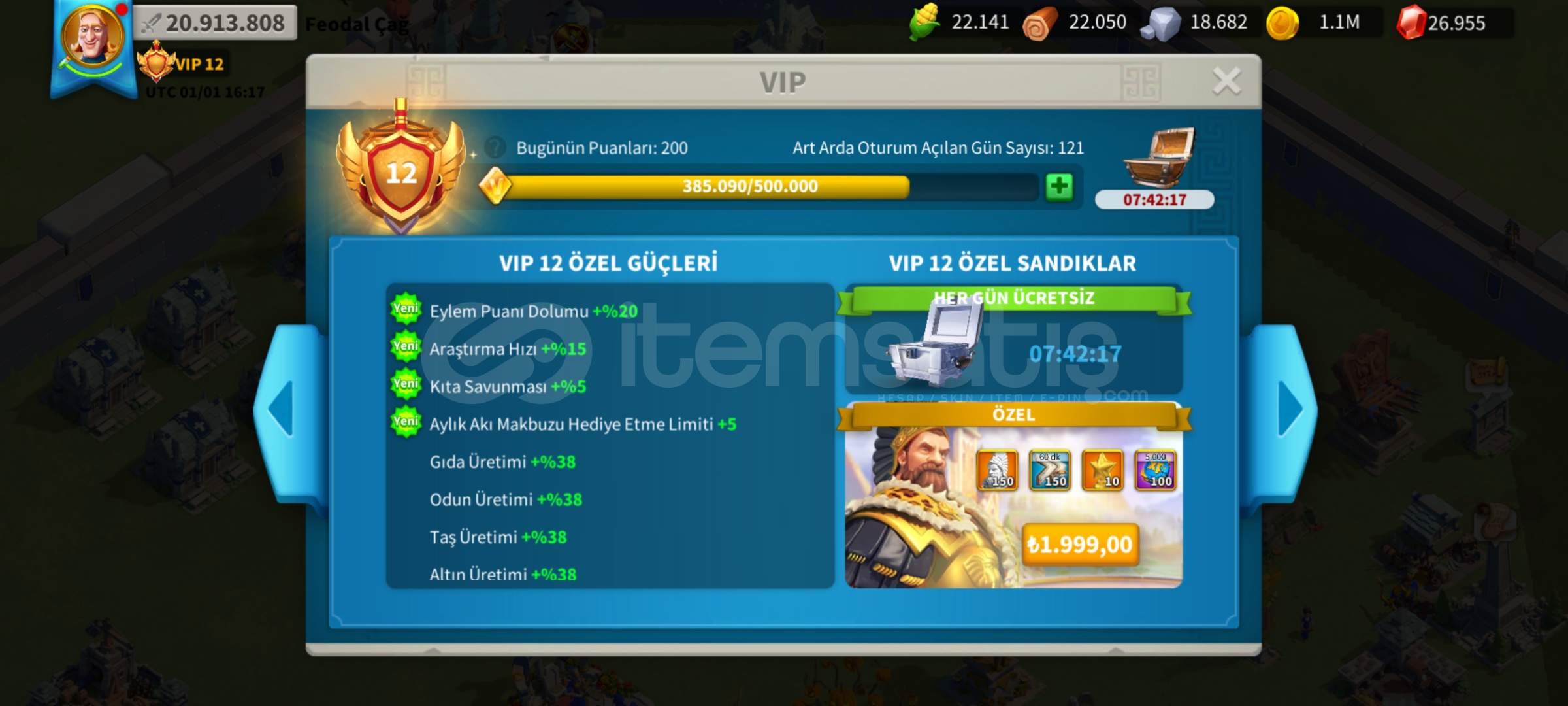 ★ KVK 1 HESABI 30K CEVHER VARDIR UYGUNA SATILIK★ Güç : 21★ Leş Puanı : 10m★ Wıp : 12★ Hı...