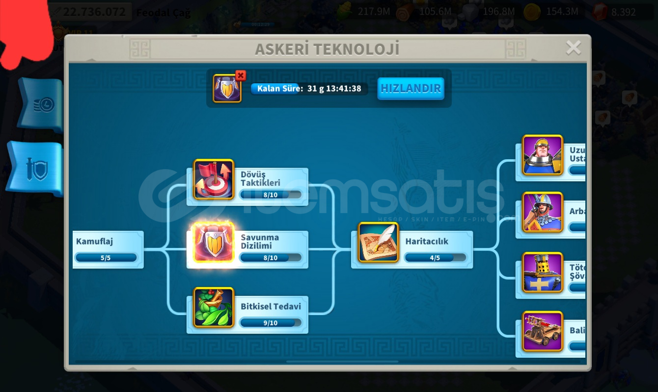 Kvk1 oynayan süvari teknolojisi iyi durumda t4 23 m gücünde hesap4 adet farm hesabı mevcuttur.Şuanda kvksı devam etmekte...