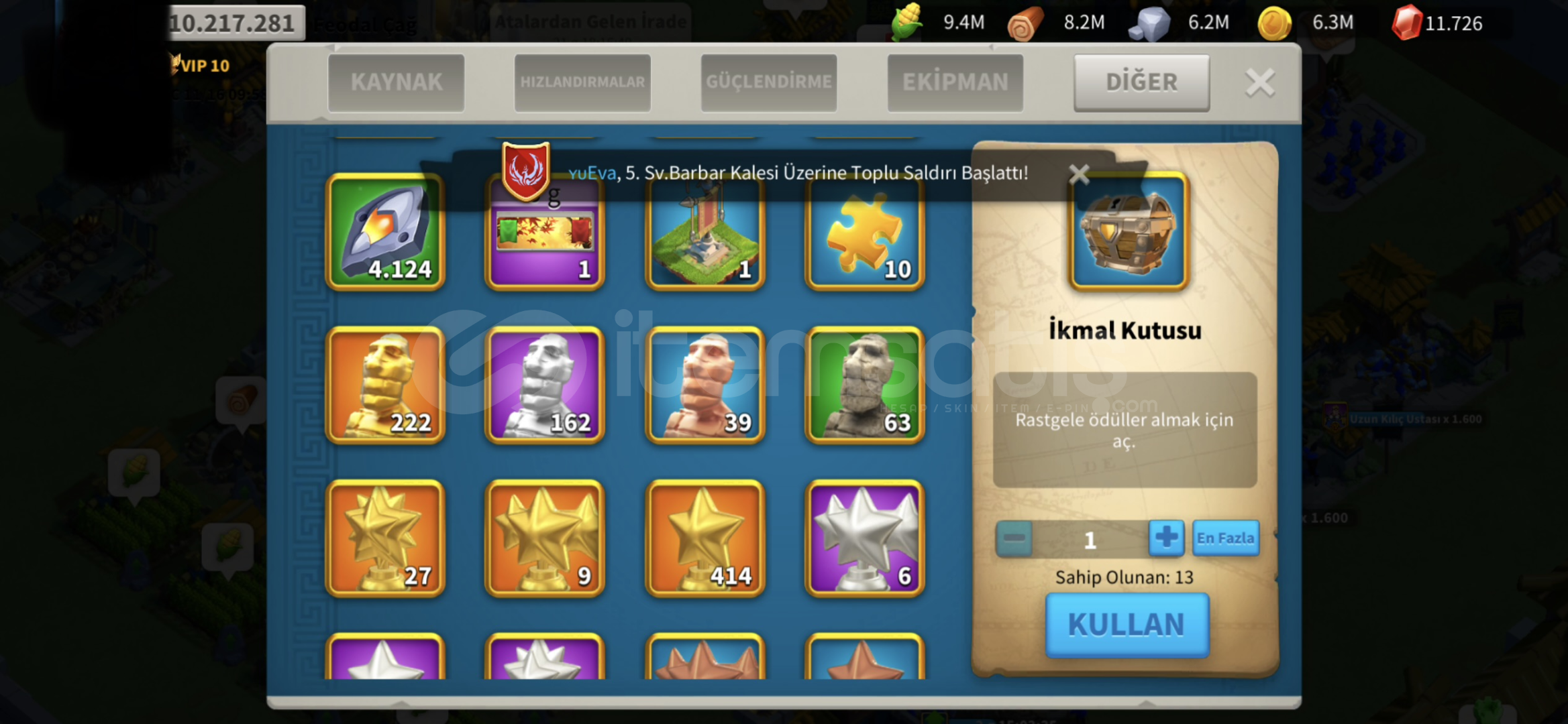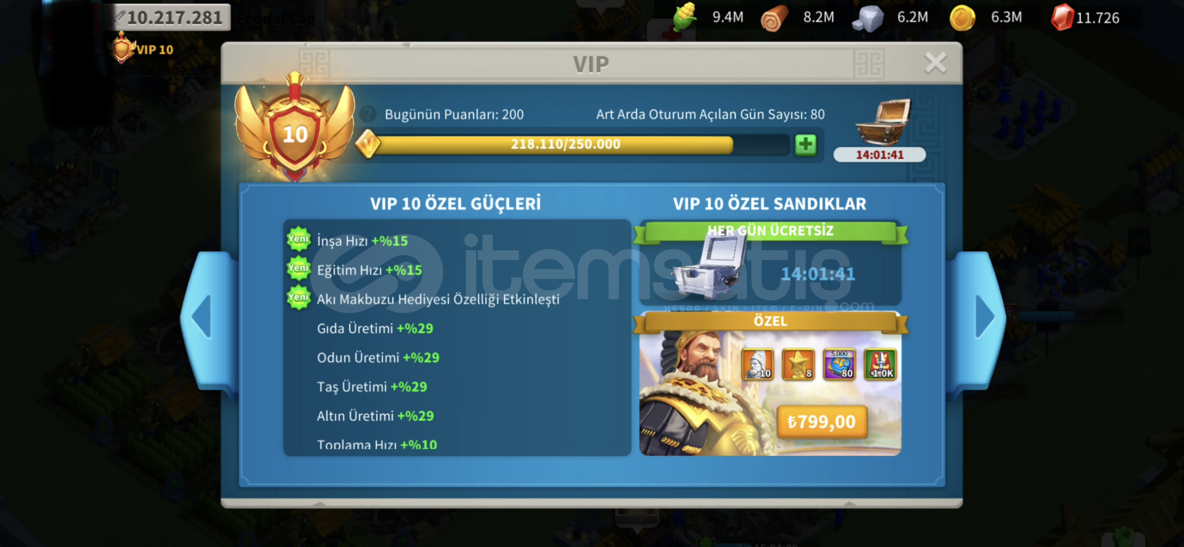 Vip11 olmak üzerehiç sarı kafa harcanmadıhenüz 80. Günde10m500k güçkrallıkta top2 ittifakta200k t4 pi...