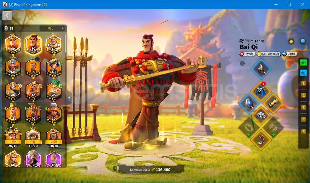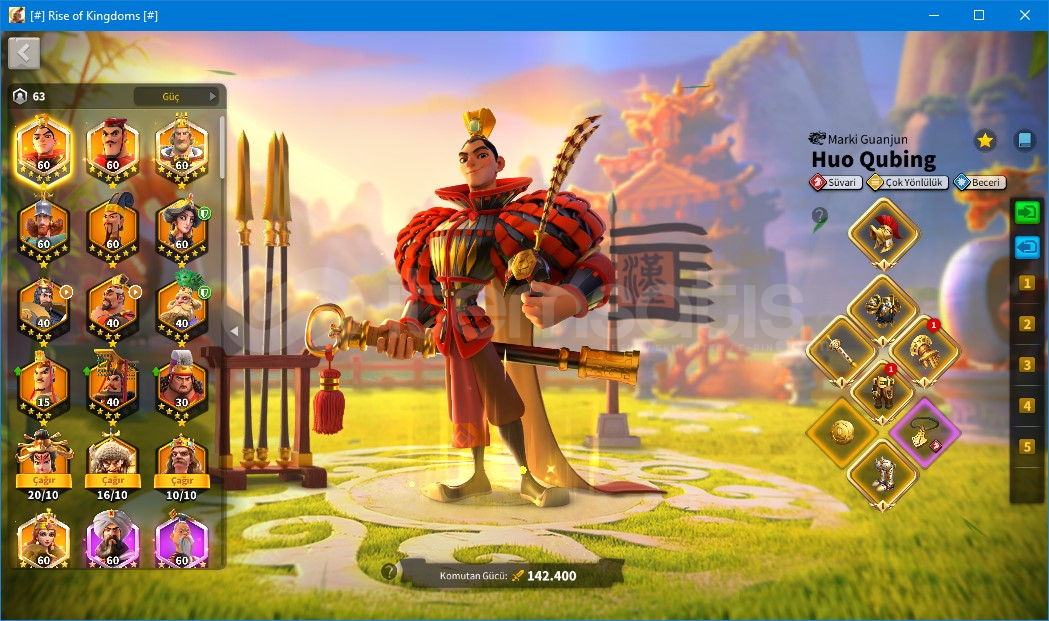 güncel güç 55m kvk sonu gelecek askerler ile 63-64m oluyor. 11 pasaport ve 13.7m kredi puanı var. Komutanlar huo,bai ve arthur uzmanlık açık. liu che richard 5-5-1-1. William wallace,zhuge,heraklius,hektor ve Qin shi 5-1-1-1. Komutanların ekipmanları görselde (piyadenin kafalığı efsane olmak üzere)