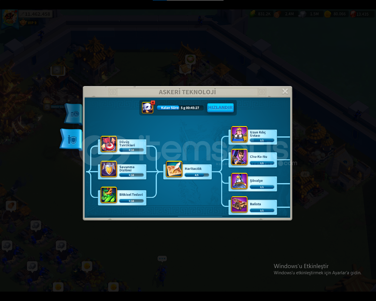 Hesap 11.5m gücü var t4 açık 70m altın var vip 10 olmaya son 9k cevhercharles martel 47 seviye 5 3 1 1 (ekipmanlı)sun tzu 50 seviye 5 5 5 5 (ekipmanlı full)belisarius 41 seviye 5 5 5 5 (ekipman yeşil full)aethfield 5 5 3 1 40 seviyearkasından baybars geliyor süvari oynamak isterseniz 2. kıta hazırhesabın içinde ysg minamoto ve pirus var hafif dizilikvk1de 7. seviye geçitler açılmadı henüz alana...