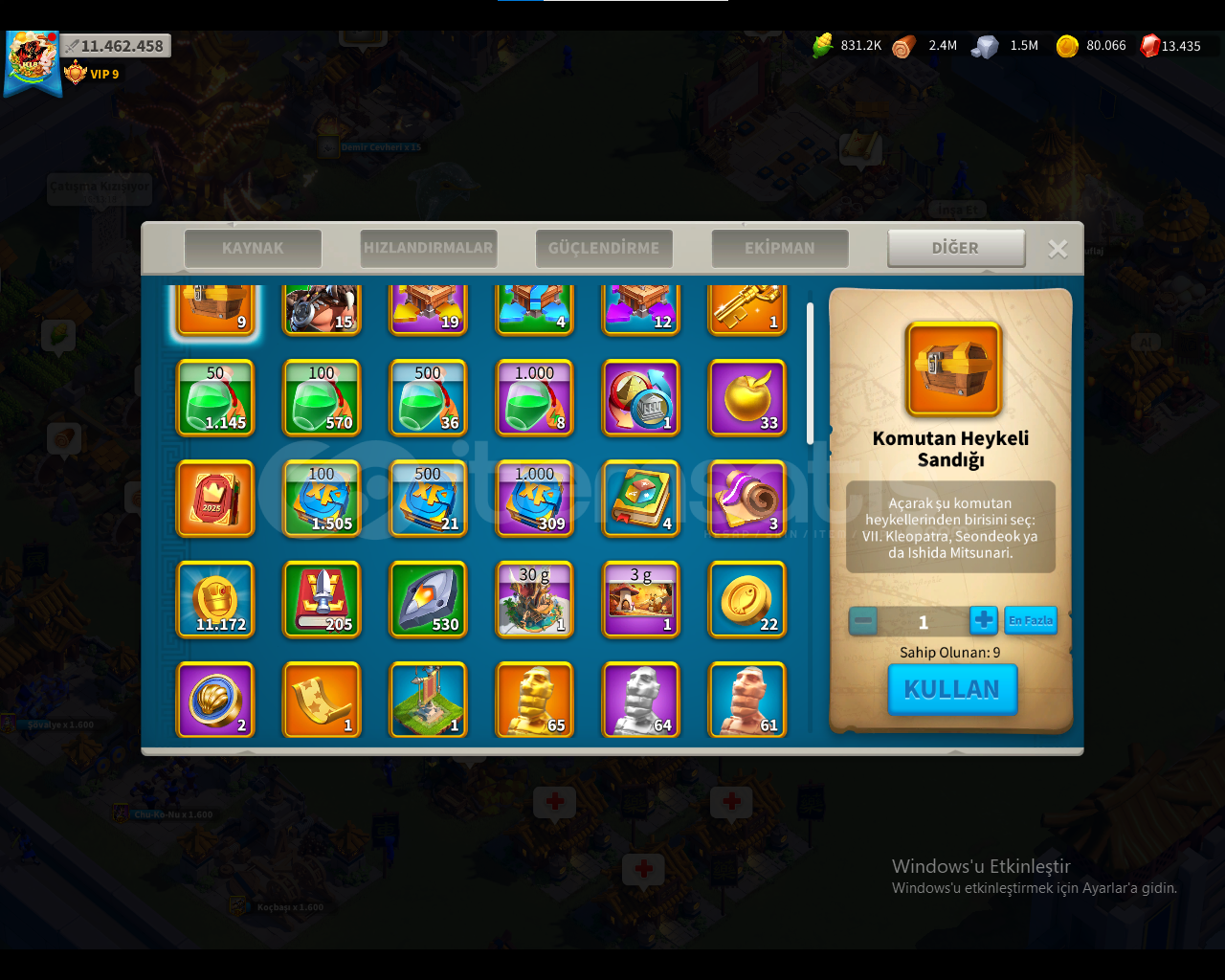 Hesap 11.5m gücü var t4 açık 70m altın var vip 10 olmaya son 9k cevher