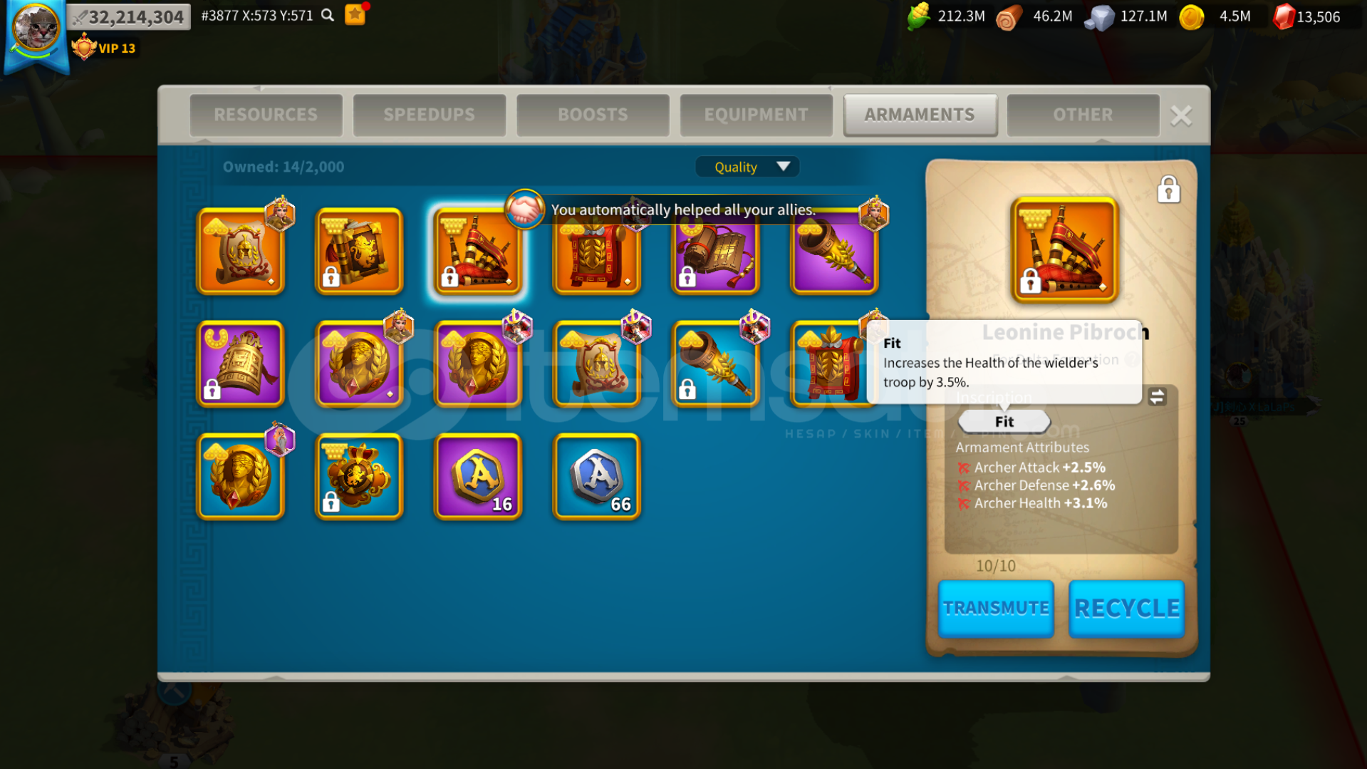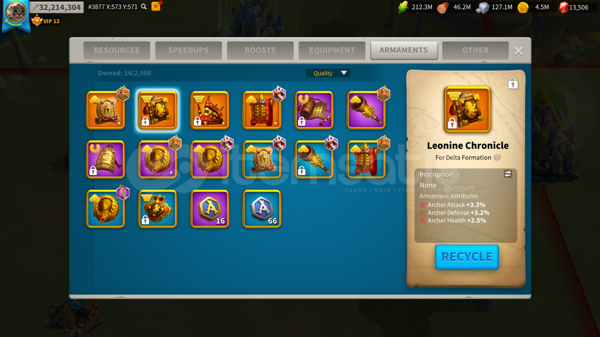 vip 13 - tech max - komutan ve itemler resimler ve videoda görüldüğü gibi - aynı hesapta 7 tane farm hesabı var 3 tanesi aynı krallıkta 4 tanesi çevre krallıklarda ve eski krallıklarda 2 tane 20m+ hesap var. 2 adet okcu için armamenti hazır sadece formasyon değişikliği gerekli ve armament detayları fotoğrafta görüldüğü gibi. komutan değiştirme için ysg ve cc max herhangi 2 komutan max 60lv olarak komutan değişimi etkinliğinde değiştirilebilir. hesapta 650k süvari var süvari main bir hesap ancak okcuda kasıyorum okcu techini maxladım ve 2 itemi bastım ve okcu set silahının 18 taslağı var max 10 foto koyabilidğim için onları gösteremedim ama ilgilenenler için tüm farmları ve hesabı gösterdiğim video var.