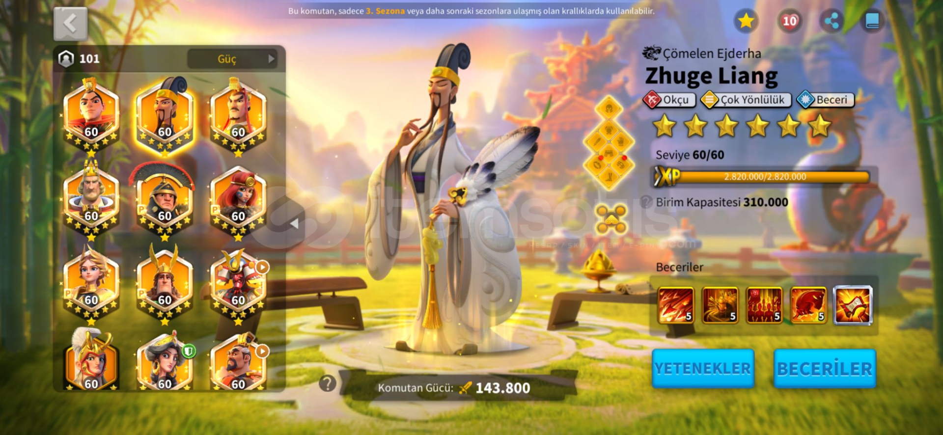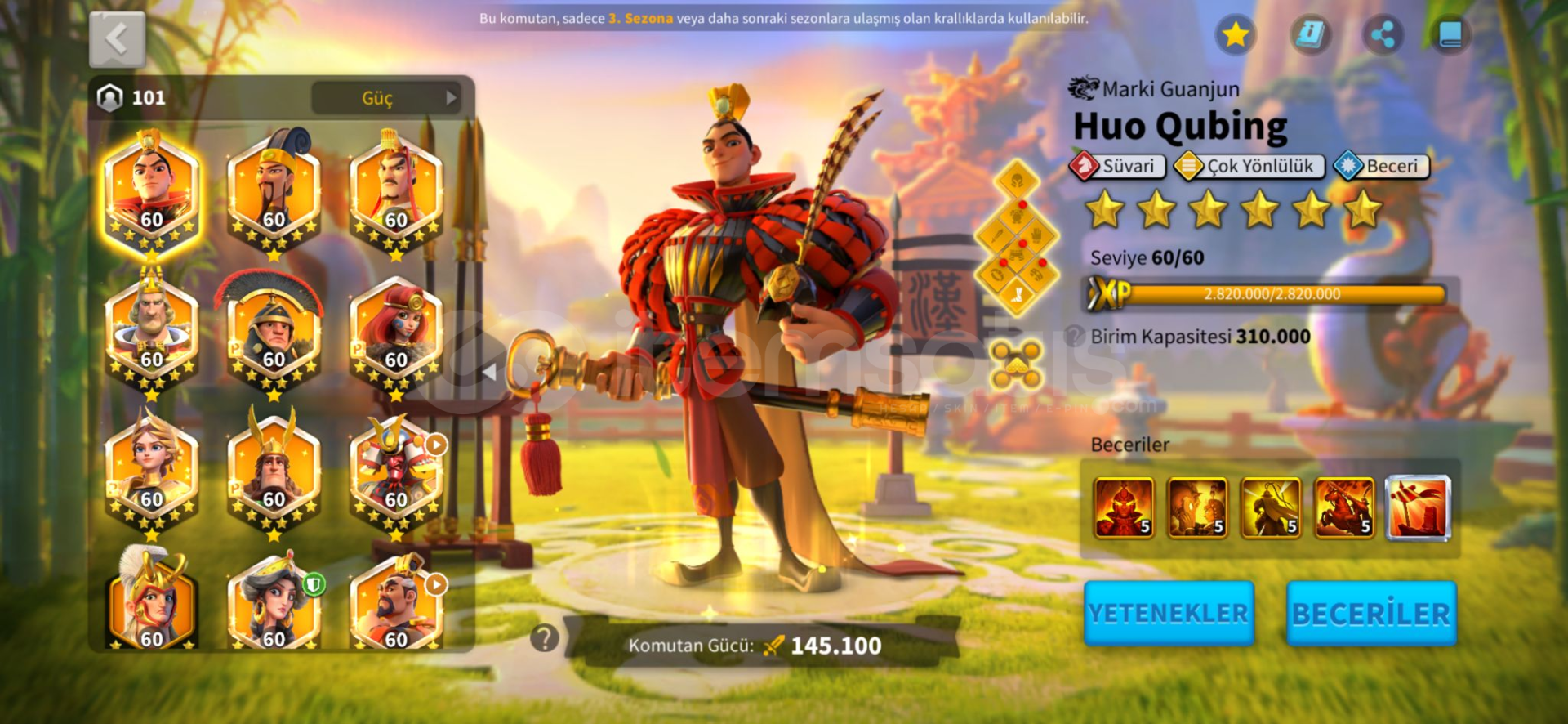 ● Full Komutanlar : huo ,zhuge, liu che, arrthur, scipio,boudica, jeanne,hermann, minamoto, gorgo, cao,nevsky, xiang yu, ysg, martel