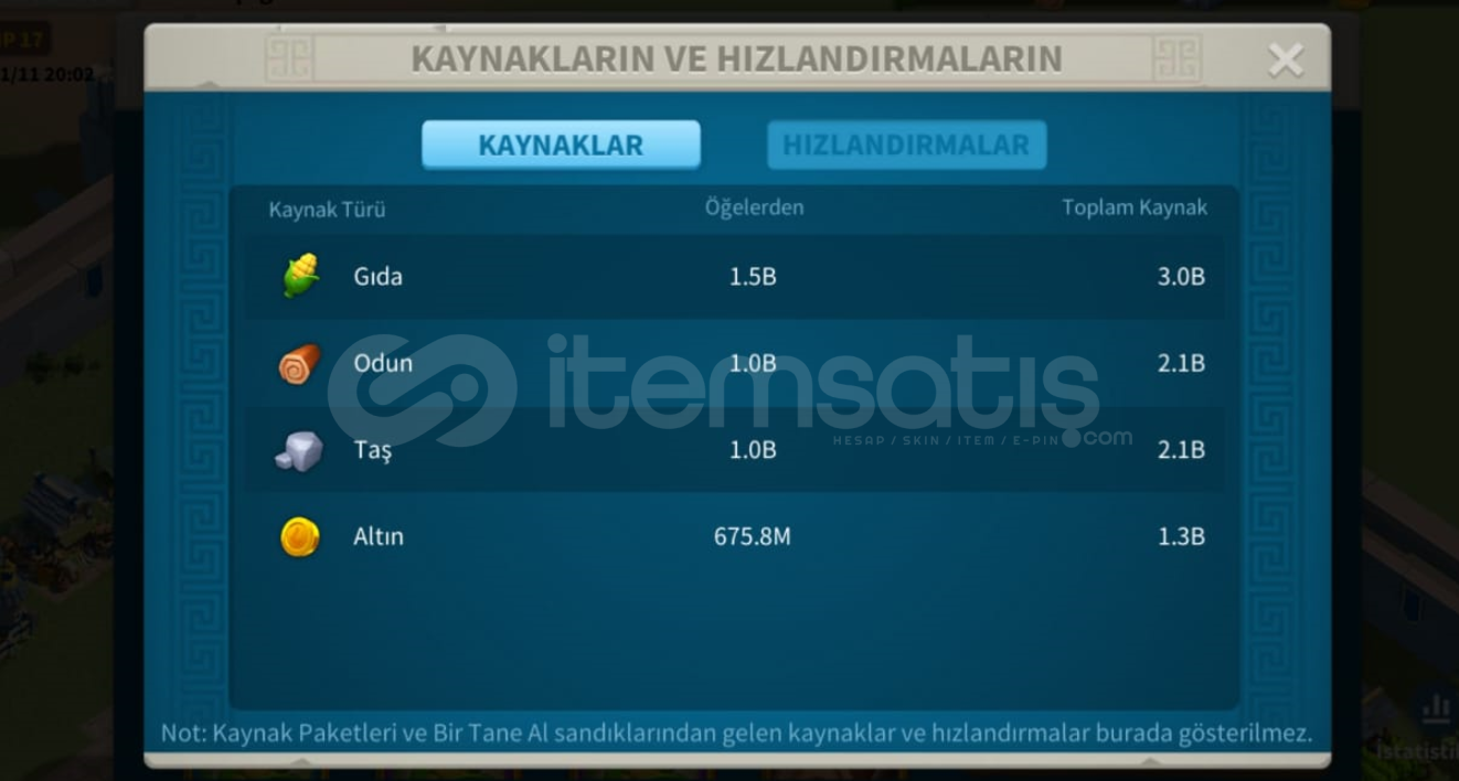 *• KAYNAK :*toplam3 B gıda,2,100 odun 2,100 taş ve 1,300 mil altın